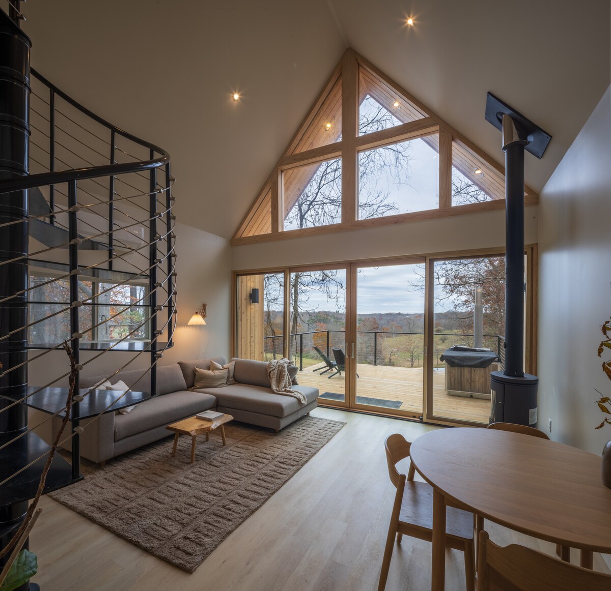 Ласкаво просимо до Фокс-Рідж, абсолютно нового сучасного помешкання-шалаша, розташованого в мальовничому центрі Хокінг-Гіллз! Фокс-Рідж знаходиться всього в 15 хвилинах їзди від печери Старого чоловіка та всіх пам 'яток району і пропонує ідеальне поєднання близькості та усамітнення. Зайдіть всередину, щоб відчути тепло нашого відкритого дизайну, де сучасна естетика відповідає затишку зрубу. Незалежно від того, чи ви любите відпочинок на свіжому повітрі, готові досліджувати Хокінг-Гіллз, чи шукаєте спокійний відпочинок, Фокс-Рідж - ваш ідеальний відпочинок.