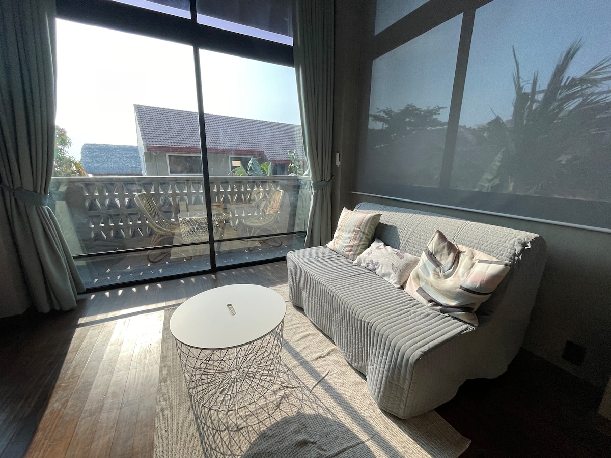 The Sea studio 2 at A-Lofts is a 35 sqm luxury studio with sala, kitchenette & ensuite bathroom, a balcony facing the 2 best surf breaks; beach & Point break. Enjoy this uber stylish studio and its centrally located place close to all the must see places in surf town. A- lofts is beside el union & less than 2 min to all the best bars, cafes & restos. Published rated is for 2 pax but can accommodate up to 4 pax & up to 5 max. Please input correct no. of pax & price will change accordingly :)