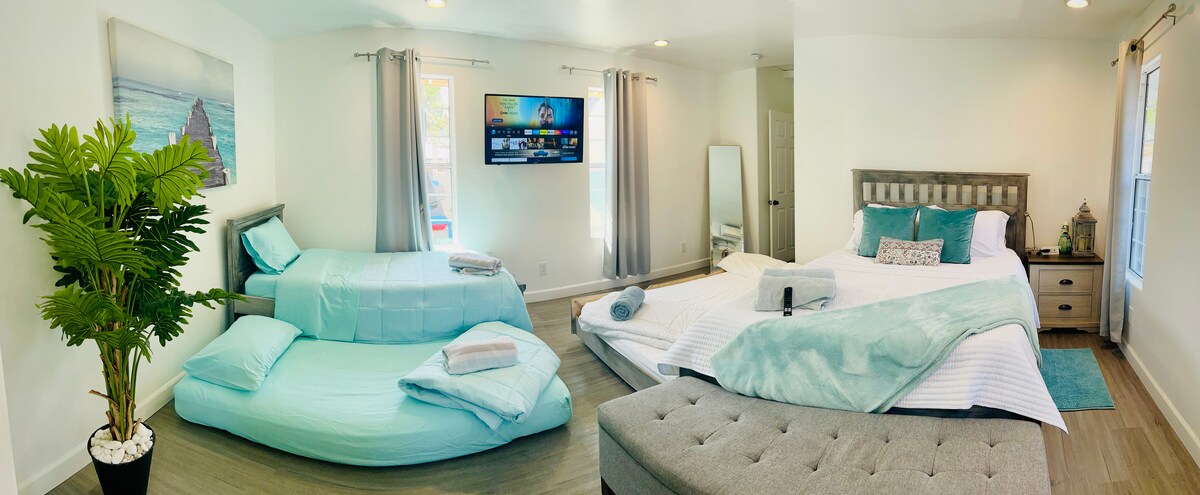 🌷 Message for spring savings 🌷 Peaceful and centrally-located getaway. This relaxing space is your perfect base with a beautiful patio set up and BBQ grill. Conveniently located within minutes of 710 freeway to travel to LA's hottest spots. ☀️ Two spacious and comfortable king sized beds. One memory foam sofa bed and one air mattress also included. One full bathroom. Fully equipped kitchen with all appliances. Free parking in the driveway. Professionally cleaned for every stay