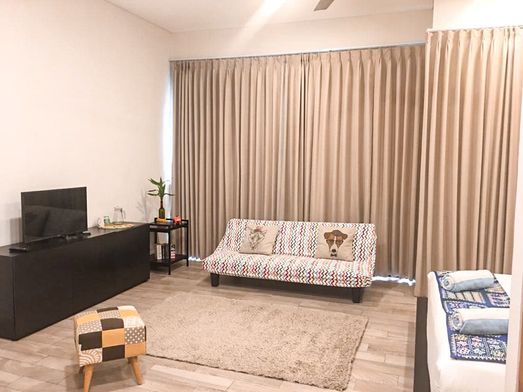 Це простора, чиста студія, яку можна перетворити на 1 зручну спальню. У ньому є портативна розділювальна стінка. Розроблено в скандинавському стилі. З цієї квартири рідкісного типу відкривається надзвичайно красивий світлий вид на Джакарту. Ця квартира, оточена ресторанами, барами, розвагами та офісами, дуже підходить як для професіоналів, так і для сімей. Поруч із квартирою є ресторани, клініка, міні-маркет, тренажерний зал і басейн, а також цілодобова система безпеки. Система відеоспостереження на кожному поверсі