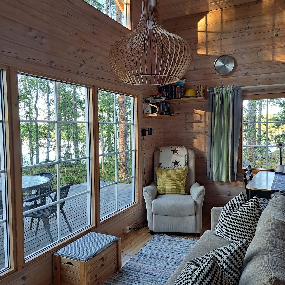 Pikkumökki- це затишний, традиційний бревенчатий котедж з чудовим видом на озеро Саймаа. У котеджі є відкрита загальна площа (гостина та міні-кухня) та спальний альков. Сауна знаходиться в тій самій будівлі з власним входом. Душу немає, але ви миєте себе освіжаючою озерною водою. У окремій будівлі немає водяного туалету, але традиційний сухий еко туалет. Велика тераса та гриль для барбекю. Поруч з дачею розташований невеликий бунгало з двома ліжками.