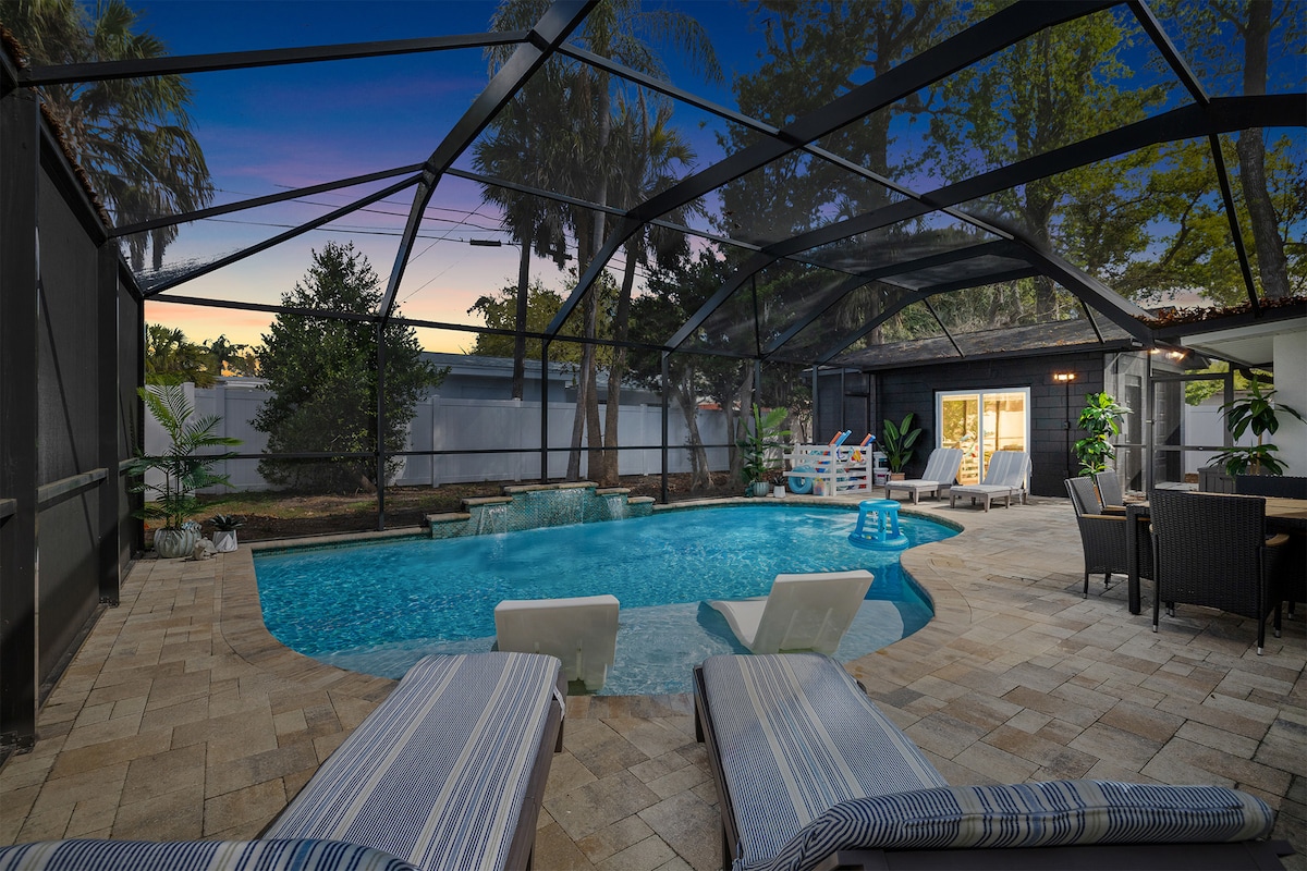 Шукаєте стильне місце, розташоване в центрі міста, щоб відвідати Сент-Піт і Галфпорт? Ось воно! Це 2 ліжка, 1 ванна кімната з матрацами з королівською та двоспальною пам 'яттю, 55-дюймовим телевізором, швидким WI-FI, пральною/сушильною машиною, водонагрівачем без бака та повністю огороджений двір. У декількох хвилинах ходьби від всесвітньо відомих пляжів, центру міста Сент-Піт і бульвару на пляжі, а також у спокійному оазисі району. Крім того, лише коротка поїздка до місцевих гарячих точок, таких як Tropicana Field, Dali Museum, Sunken Gardens та Stetson University.