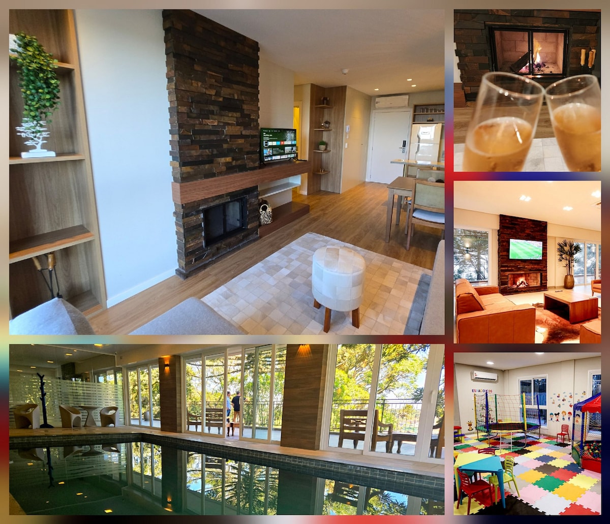 Viva momentos inesquecíveis na Serra Gaúcha! Hospede-se em um flat completo, moderno e acolhedor, com a estrutura de um hotel e o conforto de casa. Aproveite lareira, piscina aquecida, sauna, brinquedoteca, academia e muito mais. Estamos a poucos minutos da Catedral de Pedra e das principais atrações de Canela e Gramado, com fácil acesso à natureza, gastronomia, compras e cultura da região. Oferecemos serviço de café da manhã (custo à parte) entregue no apartamento. Perfeito para relaxar!