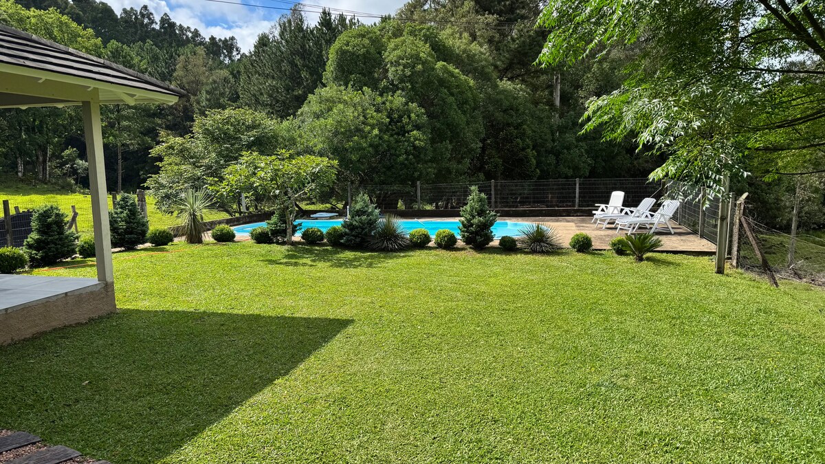 Відкрийте для себе намет у Серра-да-Макака в екологічному заповіднику Refúgio das Araucárias. Тут є стежки та чарівна річка Taquaral. Відпочиньте на порогах Манаки та відпочиньте на настилі річки. Намет площею 20 кв. м ідеально підходить для вихідних у двох. Зовнішня ванна, інтегрована з природою, і затишний внутрішній простір із каміном. Кухня на відкритому повітрі з дров 'яною та газовою плитою для автентичних кулінарних вражень.