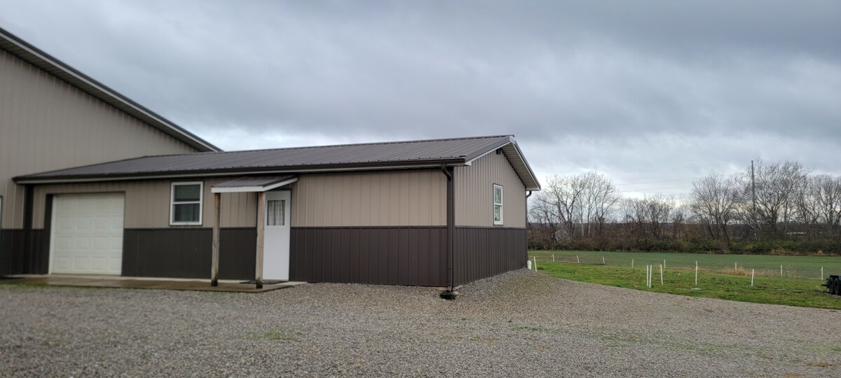 Відпочиньте в цьому затишному маленькому гостьовому помешканні, розташованому на півдні Огайо. Основна зона — це невелика кухня/їдальня/вітальня. Кухня оснащена холодильником, електричною плитою з 2 конфорками, кавоваркою, чайником та іншими предметами першої необхідності. 1 спальня з ліжком queen-size та повною ванною кімнатою. Усе помешкання призначене для гостей. Між квартирою та рештою будинку, де живе власник, є зачинені двері та коридор. Наша мета – забезпечити вам чисте та комфортне місце для розміщення!