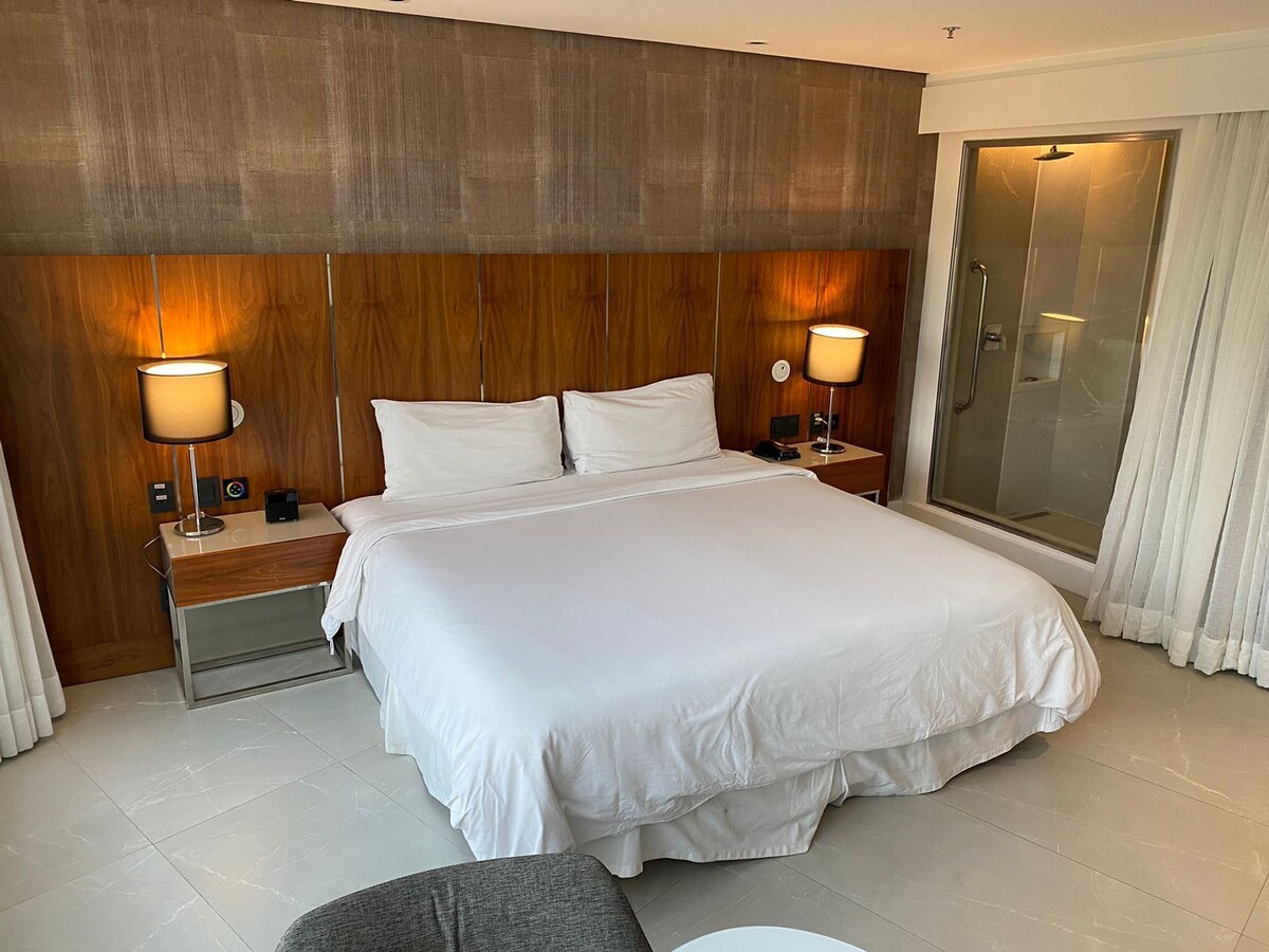 Готель Nacional - São Conrado відмінно підходить для тих, хто любить комфорт і спокій, не залишаючи південну зону. Розкішний двомісний номер MAR площею 34 м² з видом на море, обладнаний 1 ліжком розміру king size та до 2 додаткових ліжок. Вміщує до 4 дорослих — 1 ліжко розміру King size та два додаткові ліжка. У готелі є відкритий басейн, спа-центр і тренажерний зал. Ви можете насолодитися вишуканими напоями в барі Bardot Pool Bar, а також скористатися сучасною кухнею ресторану Sereia.