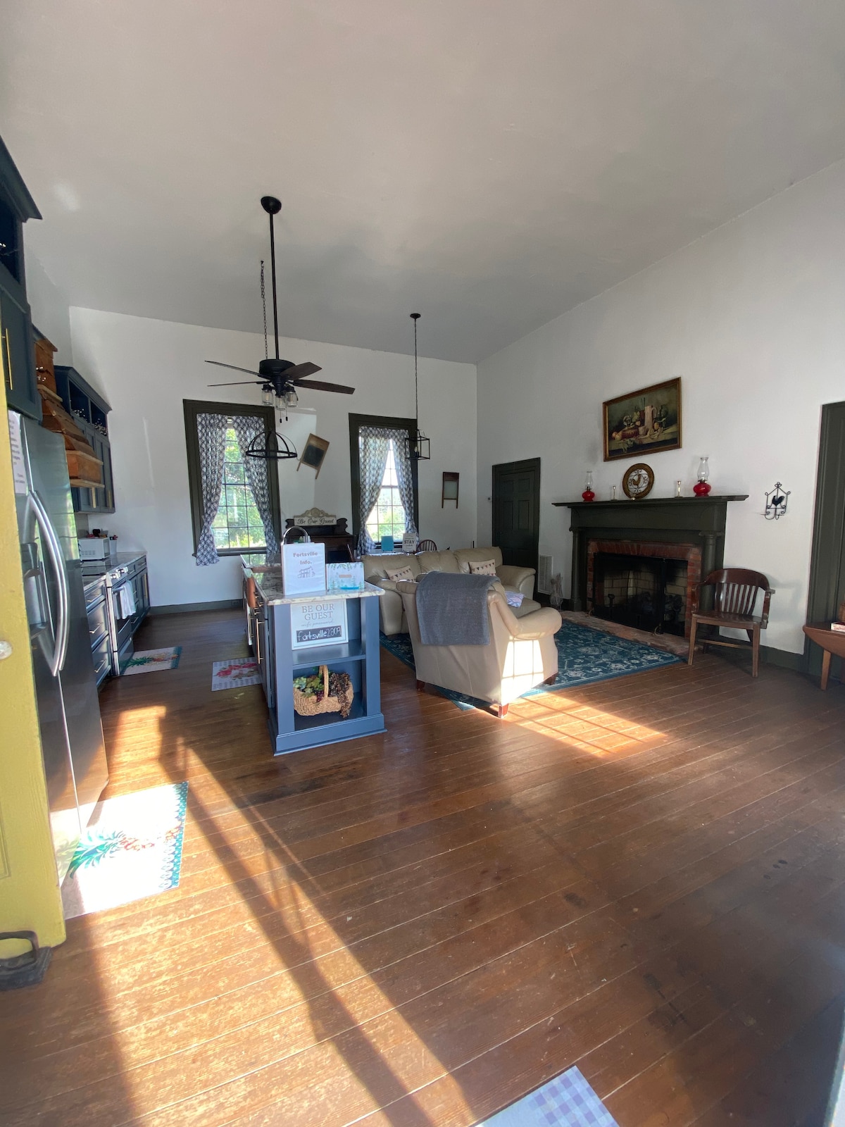 Наш нещодавно відремонтований фермерський будинок розташований на 80 акрах землі з видом на два ставки, повністю заселені рибою для риболовлі. Наш двоповерховий будинок з відкритою концепцією забезпечує достатньо місця для 9 осіб. На першому поверсі є дві вітальні, повністю обладнана кухня та дві ванні кімнати. На першому поверсі є дві спальні (3 ліжка). Верхній поверх будинку відкритий лише тоді, коли бронювання здійснюють більше 5 гостей (стягуються додаткові збори). Нагорі є 2 додаткові спальні та туалет.