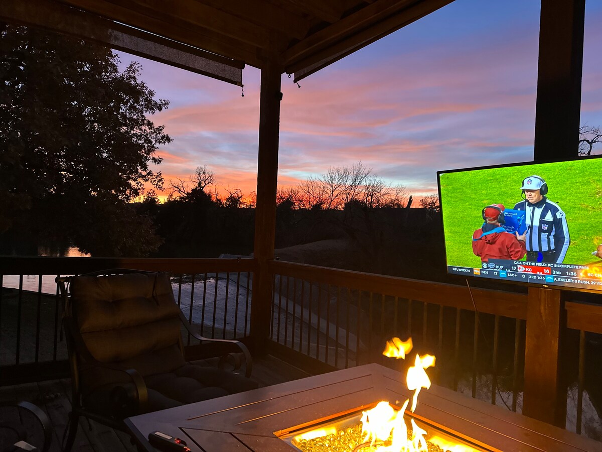 Відпочиньте на нашому приватному курорті Lake House у Берртоні, штат Канзас, всього в 25 хвилинах їзди від Вічіти. Насолоджуйтеся купанням і риболовлею на озері, парком піщаних дюн UTV, професійним тренажерним залом і освітленим кортом для піклболу та баскетболу для денної або нічної гри. Після тренування охолодіться, поплававши або розслабившись біля відкритого багаття. Усередині є просторі вітальні, повністю обладнана кухня, барна зона та більярдний стіл. Burrton Lake має 6 спальнь, 4 ванні кімнати та місце для 16 гостей, тож ідеально підходить для сімей і друзів.