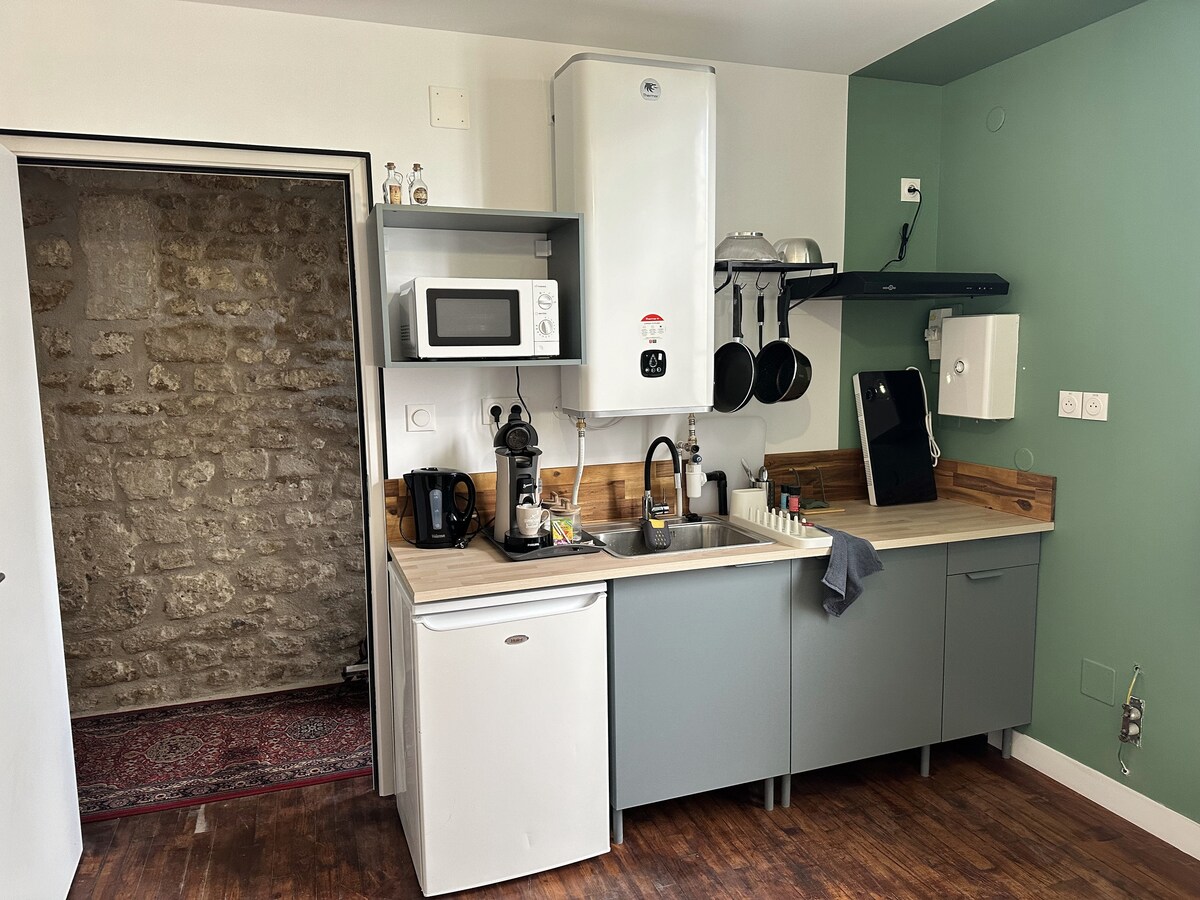 Наша квартира, розташована в центрі міста Ангулем (залізнична станція 500 м), була повністю відремонтована навесні 2018 року. У ньому є багато активів, щоб ви почувалися комфортно під час ділових поїздок, сімейного перебування або прихованих екскурсій по столиці коміксів з друзями! Ідеально обладнана, вона складається з кухні, вітальні, 2 просторих спалень, ванної кімнати, окремого туалету, офісу та спільного подвір 'я, усе в тихому місці.