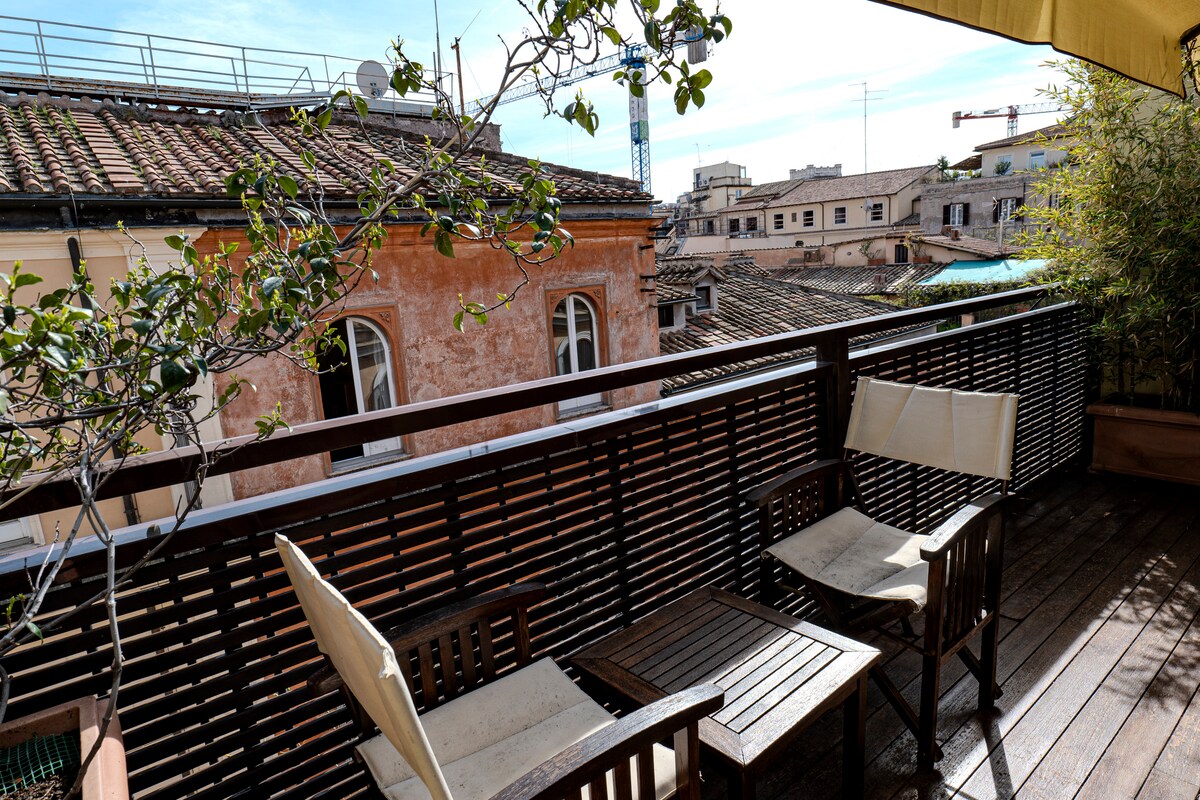 Захоплюючий і експансивний краєвид на всі пам 'ятники Риму та теракотові дахи має бути на терасі цього унікального скарбу помешкання, розташованого на верхньому поверсі особливої будівлі історичного центру Риму. Ця квартира відома нам як люкс для медового місяця, оскільки вона ідеально підходить для пари і має все необхідне для романтичного перебування у Вічному місті.