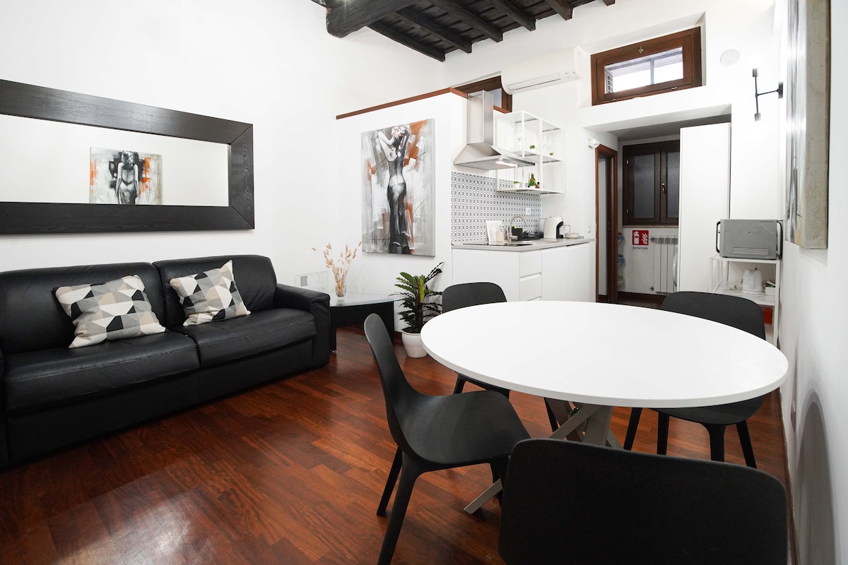Nel cuore di Roma, a pochi passi da Piazza di Spagna, questo elegante appartamento con 4 posti letto offre il perfetto equilibrio tra comfort e posizione. La camera dispone di un letto matrimoniale, mentre il soggiorno indipendente include un comodo divano letto doppio. Cucina completamente attrezzata, bagno moderno, ambienti luminosi e arredati con stile. La metro Spagna si trova a pochi minuti a piedi. Perfetto per esplorare Roma a piedi, circondati da negozi, ristoranti e luoghi iconici.