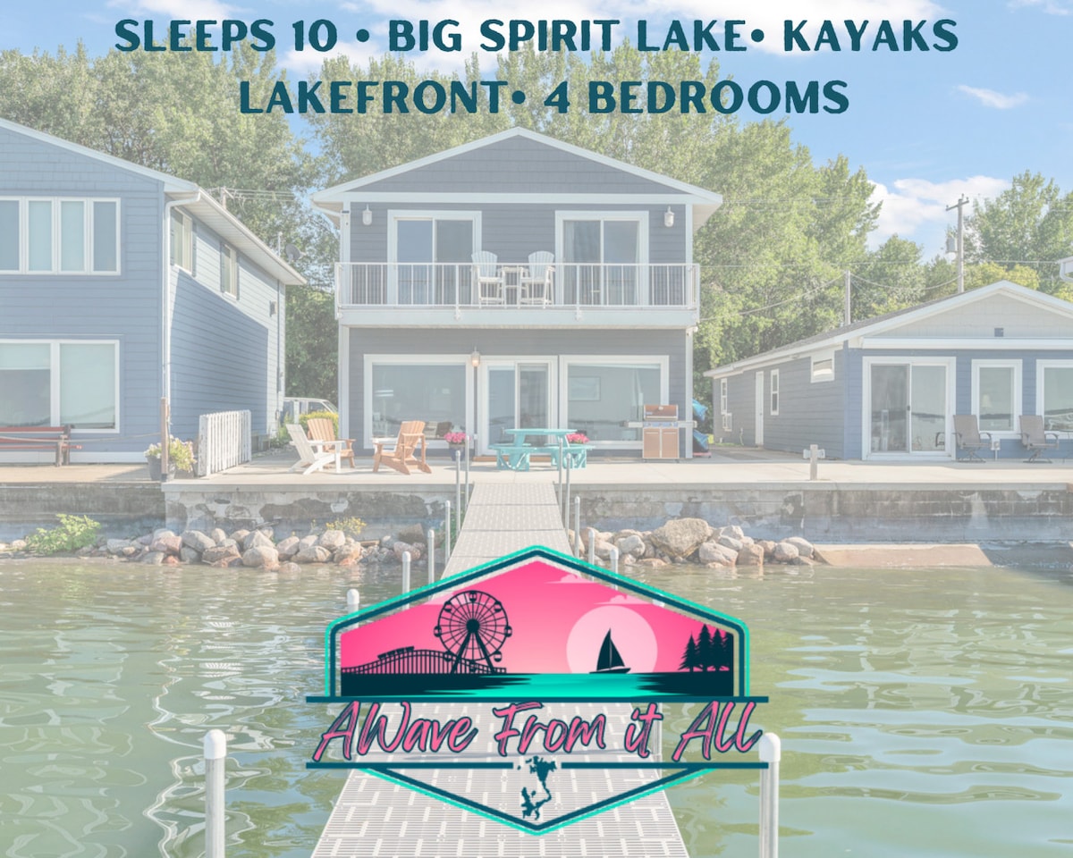 Ласкаво просимо до Lakefront Cove – красиво оформленого просторого будинку з 4 спальнями та 3 ванними кімнатами, розташованого в тихій бухті на Східному озері Окободжі. Атракціони Айова Грейт Лейкс знаходяться всього за декілька хвилин, включаючи історичний парк розваг Арнольдс Парк, Центральний Емпоріум і сезонний фермерський ринок. Поруч розташовані магазини, ресторани, живі розваги, пішохідні стежки, магазини, поля для гольфу тощо. Дні на озері - найкращі дні!