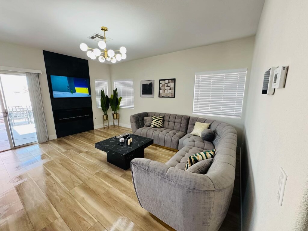 Красивий будинок з приватним басейном і спа-зоною, 4 спальнями та 2,5 ванними кімнатами. 3 смарт-телевізори 65-дюймові, приватний гараж на 2 автомобілі, барбекю на задньому дворі, місце для багаття, крісла для відпочинку біля басейну, високий стіл на 8 осіб. Будинок розташований за 8 хвилин від Стрип, новий стадіон Raiders, всі магазини та ресторани знаходяться в 1-2 хвилинах ходьби. Чудове та безпечне розташування. Зустрічі ,святкування, весілля заборонені. Якщо у вас виникнуть запитання, надішліть нам повідомлення, і ми одразу вам відповімо. Велике спасибі