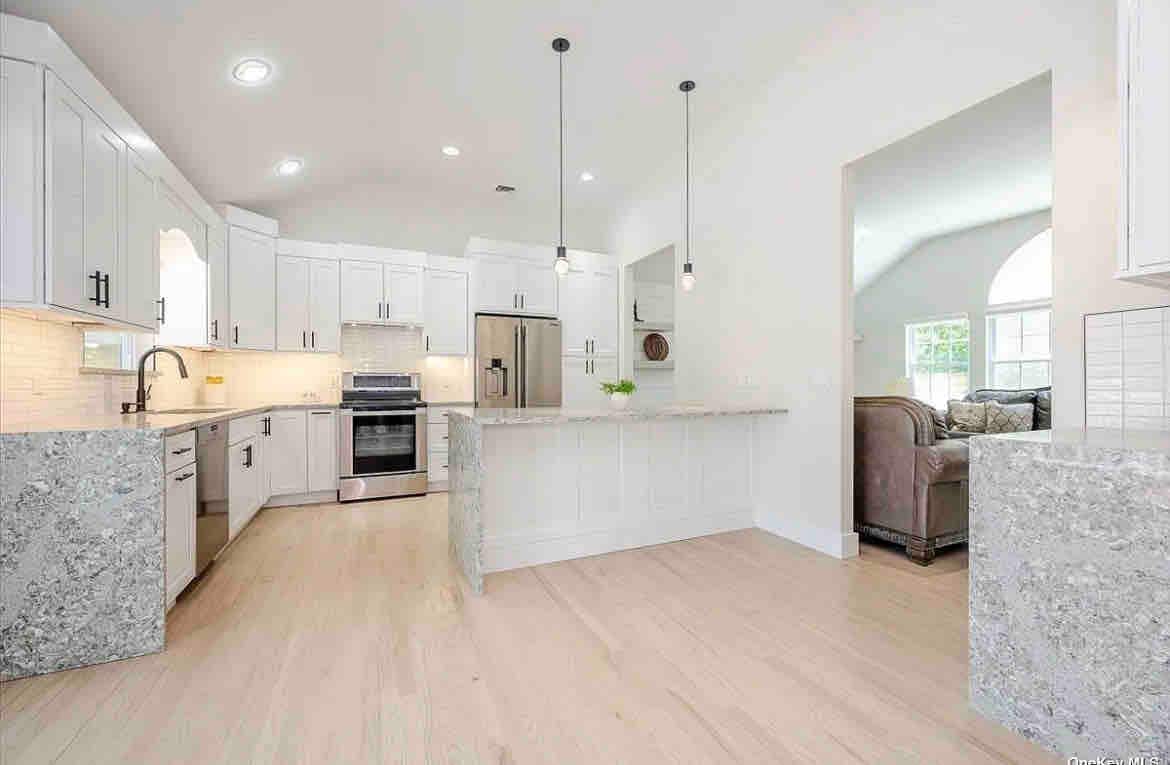 Escape to your chic, serene Hamptons oasis! Enjoy the privacy of your own home just steps to waterfront dining + more Relax poolside, spark up the BBQ + firepit under the starry sky, swim + enjoy the peace + tranquility of this property. Enjoy easy living + convenience; walk 1 block to waterfront dining + cafe. Sip cocktails while you watch the most magnificent sunsets + have morning coffee on the sea. Stream on your 80' TV You'll be 8 minutes to Main St, shopping, beaches, restaurants + more!