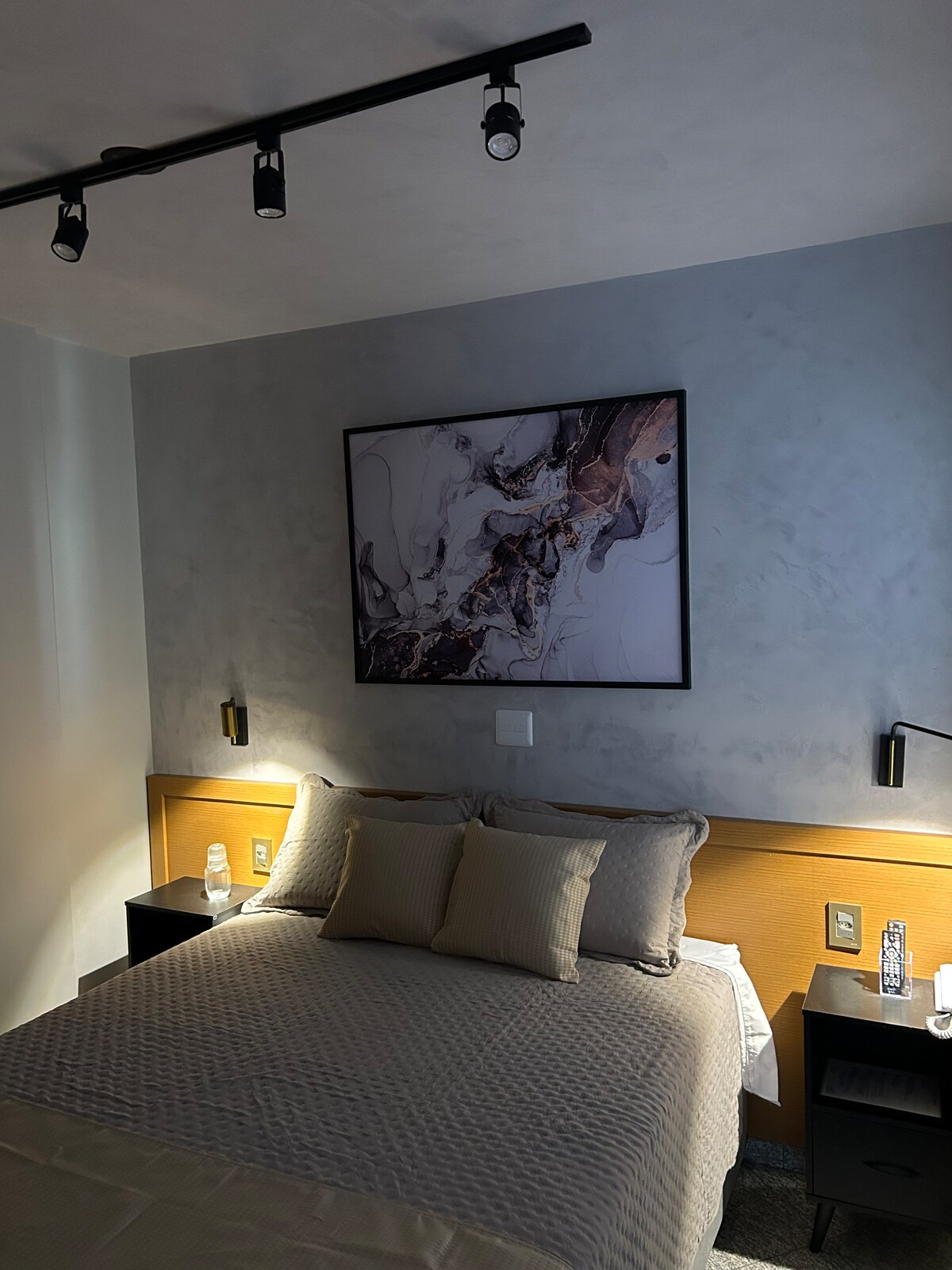 💯 Хай живе Marista Premium! Повністю облаштована квартира з окремою спальнею та вітальнею, двома телевізорами Smart TV, швидким Wi-Fi та всім необхідним комфортом, щоб насолодитися Гоянією стильно. Ідеально підходить для ділових або розважальних поїздок. Увімкніть кондиціонер і телевізор за допомогою голосової команди, слухайте музику через Alexa та насолоджуйтеся гастрономічним полюсом сектора Marista та сучасним сектором Bueno в найкращому регіоні Гоянії! Кондомініум Blend Smart Style Резиденції Creation ®️Renovato
