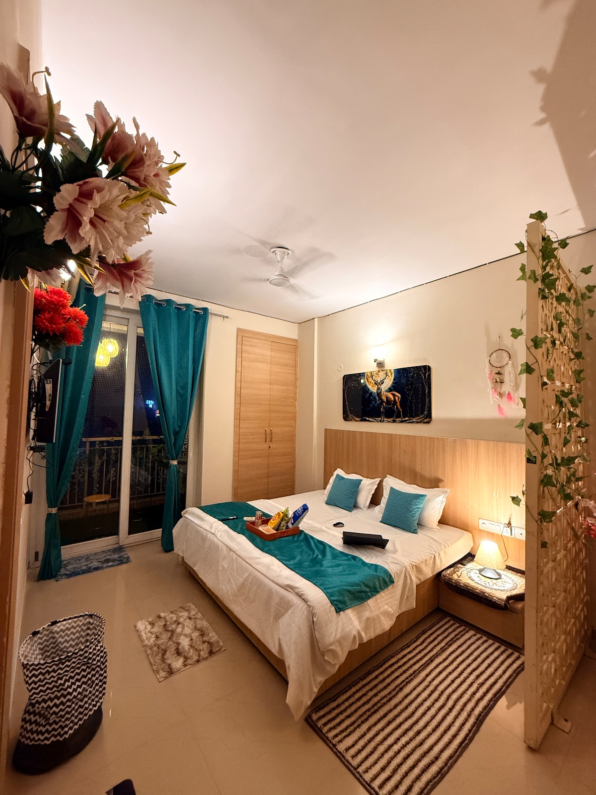 Welcome to Boho Bliss Studio by Shrisaa Homes, a charming and colorful hideaway in the heart of Vrindavan. Designed with a mix of modern comfort and boho charm, this studio apartment offers the perfect space for couples, solo travelers, or small families who want a cozy and stylish stay while being close to the city’s most sacred temples.