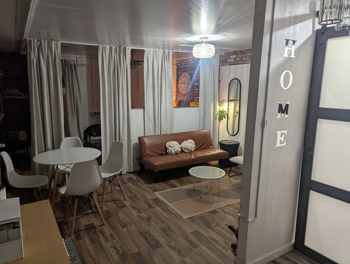 Насолоджуйтеся нещодавно відремонтованим спокоєм і спокоєм, які ви отримаєте в моєму прекрасному затишному затишному будинку Serenity. Цей тесть у стилі студії знаходиться в районі Рівер-Форест. Ви матимете повний доступ до заднього двору та перголи. Аеропорт знаходиться за 20 хвилин. У нас є Walmart і ресторани на ваш вибір. Душ не має ванни у ванній кімнаті/повній кухні/ прогулянка на довгій шафі-футонний диван-ліжко, рулон навколо двоспального додаткового ліжка.