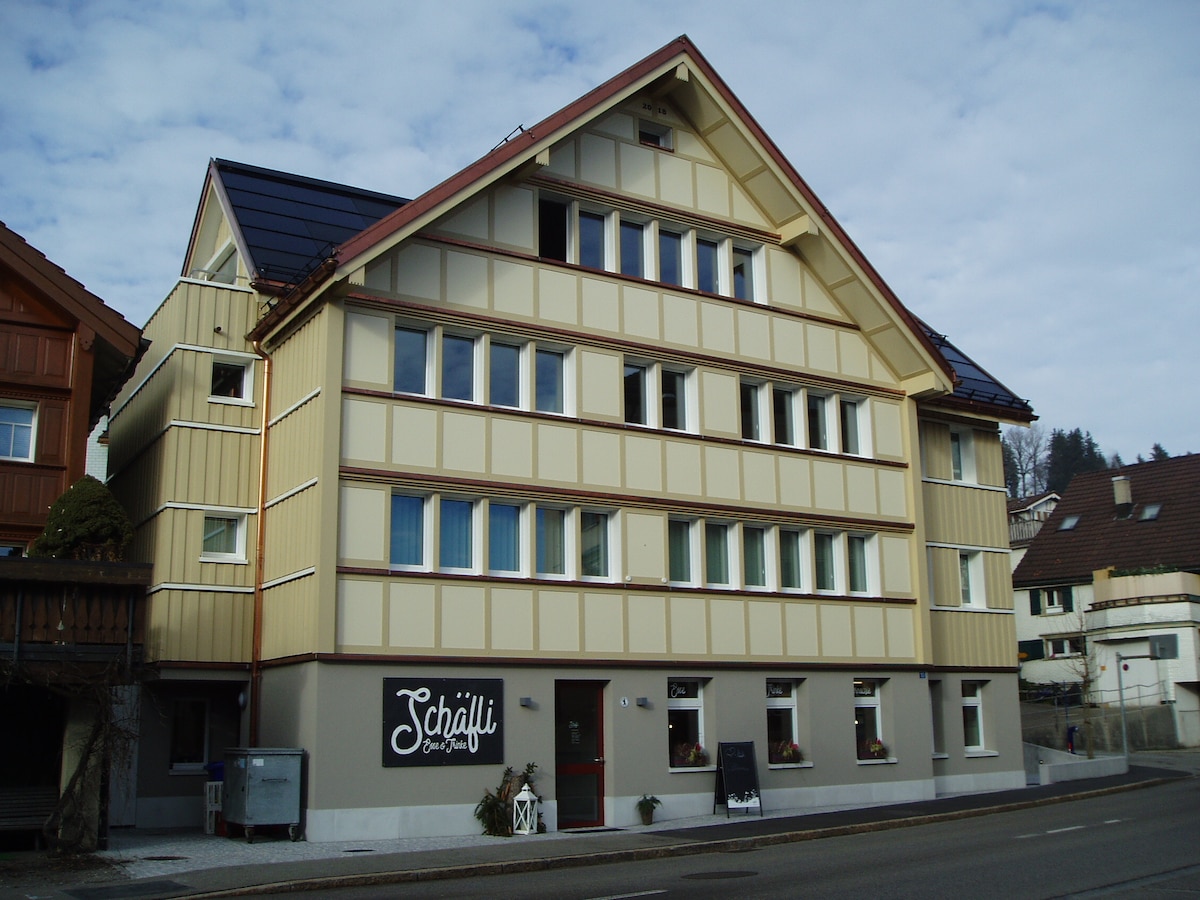 Пансіон Schäfli, побудований у 2018 році, розташований посередині села Вальдштатт, за 100 м від залізничного вокзалу. Кімната з видом на масив Альпштайн або з північного боку в тихому місці. Паркування в безпосередній близькості. Кімната для самозайнятих з кодом та карткою доступу. Окрема лаунж-зона з повністю обладнаною кухнею та кавоваркою. Сніданок також можна забронювати за 12 швейцарських франків.