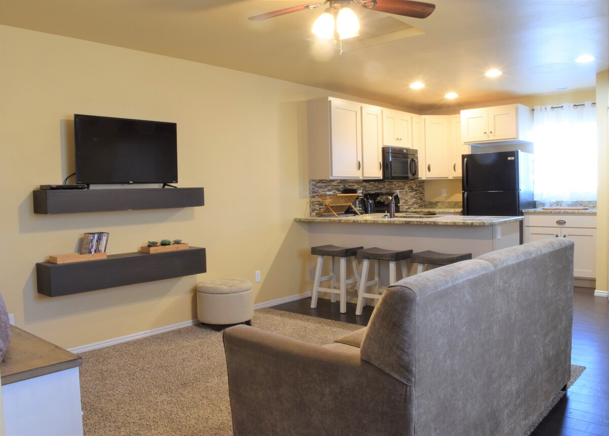 Відпочиньте в тихому та комфортному 1 ліжку, 1 ванна кімната Casita з ліжком Queen Size! Він пов 'язаний з нашим помешканням, однак має власний окремий вхід без доступності від помешкання до Casita. Всього в 20 милях від національного парку Зайон! Також приблизно за 12 миль можна дістатися за 15-20 хвилин їзди від державного парку Сенд-Холлоу. До ресторанів Davis Food & Drug, Maverick і Family USD можна дістатися пішки. Легке самостійне прибуття з входом без ключа! Телевізор, кавоварка, холодильник і мікрохвильова піч для вашої зручності.