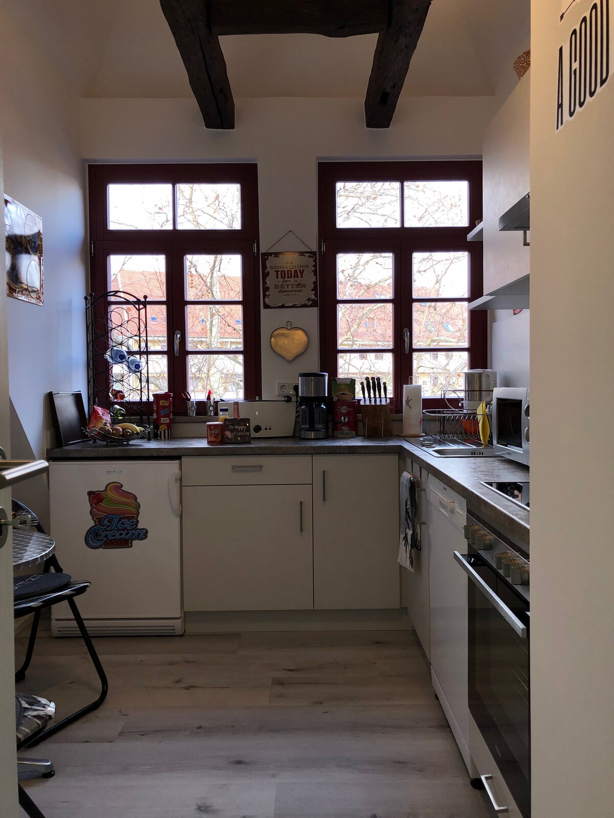 Ласкаво просимо в з любов 'ю та комфортно мебльовану квартиру. Воно розташоване в самому центрі міста і з нього відкривається вид на історичну міську стіну Нюрнберга. Станція метро та трамвайна зупинка знаходяться в безпосередній близькості (головна станція - 2 хвилини, аеропорт - 12 хвилин). До площі відомого Christkindlesmarkt можна дістатися пішки приблизно за 10 хвилин, до місцевої зони відпочинку Wöhrder See - приблизно за 15 хвилин. Багато привабливих пабів і барів знаходяться неподалік від квартири.