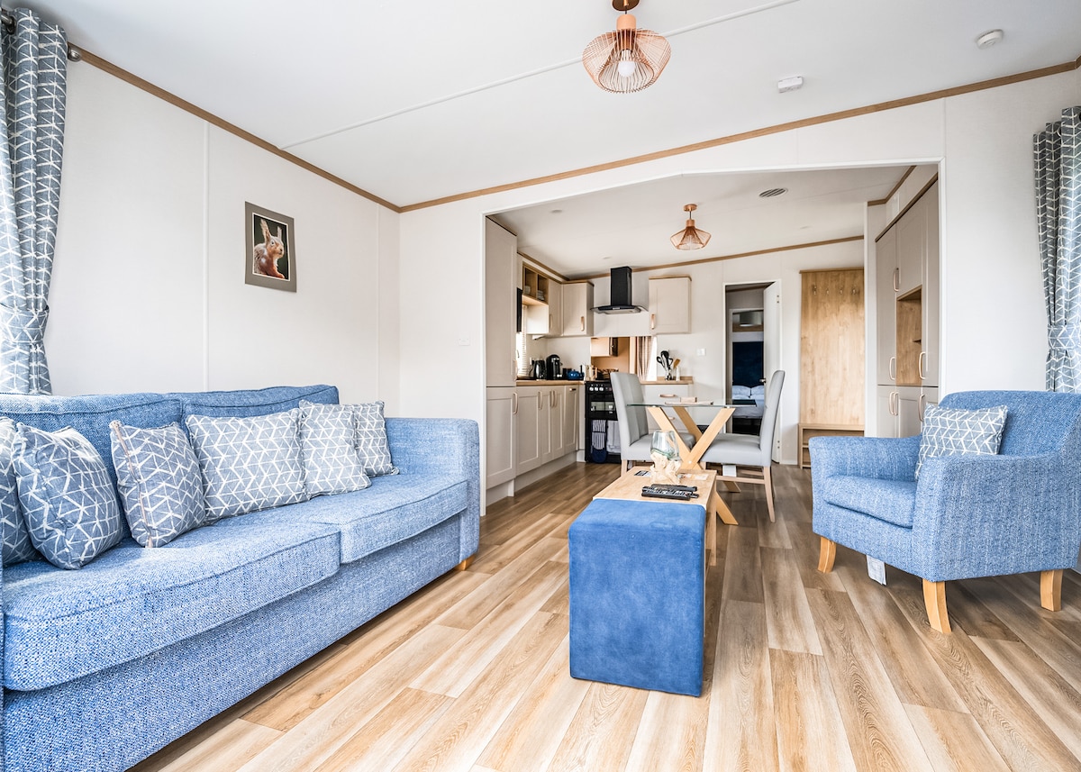 A luxury two-bedroom lodge with a modern lounge layout, perfect for families and couples.