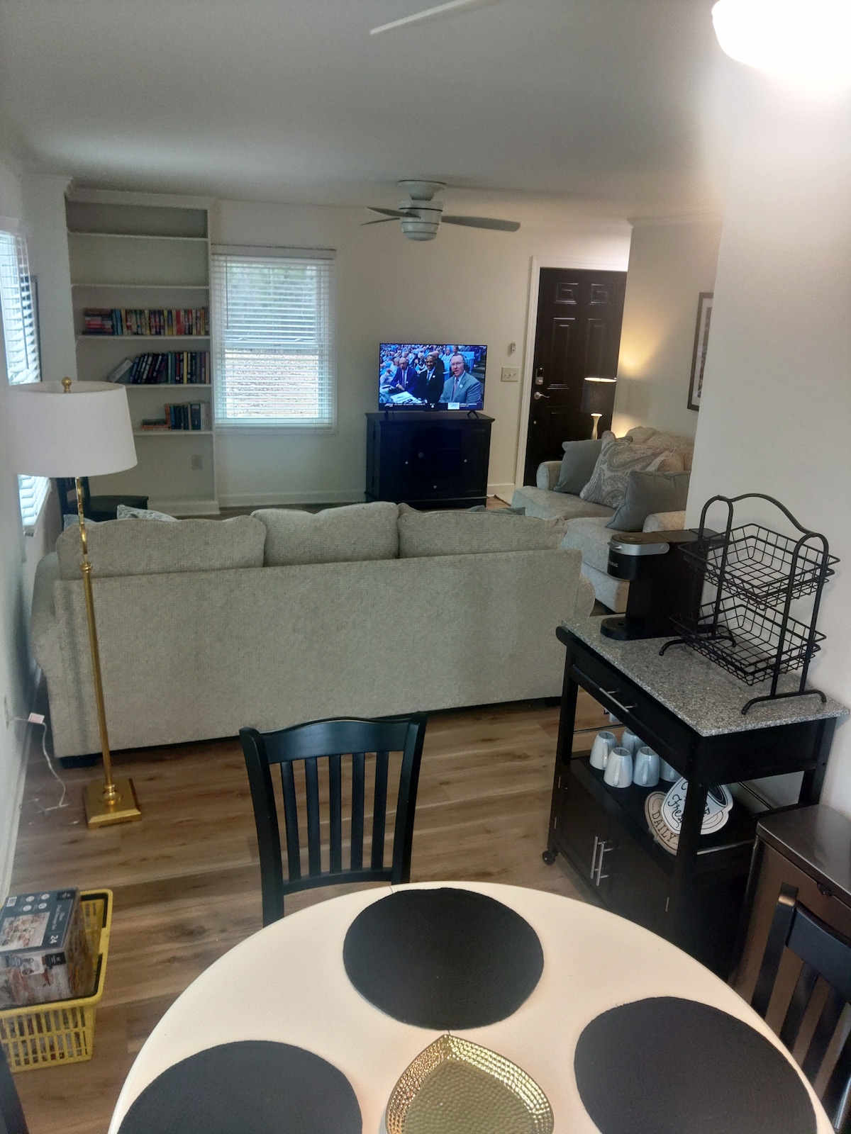 Nestled in a quiet neighborhood, on Main Street, this renovated, spacious upstairs apartment offers a cozy, tranquil retreat. Featuring a large bedroom with two double beds, a retro kitchen with leathered countertops, an eat-in bar, a washer/dryer, and a spacious living area with a TV, it has everything you need. Enjoy a private entrance and outdoor area. Centrally located, it's within walking distance of downtown and restaurants, 15 minutes to Morrow Mnt., Uwharrie Nat. Forest & Lake Tillery!