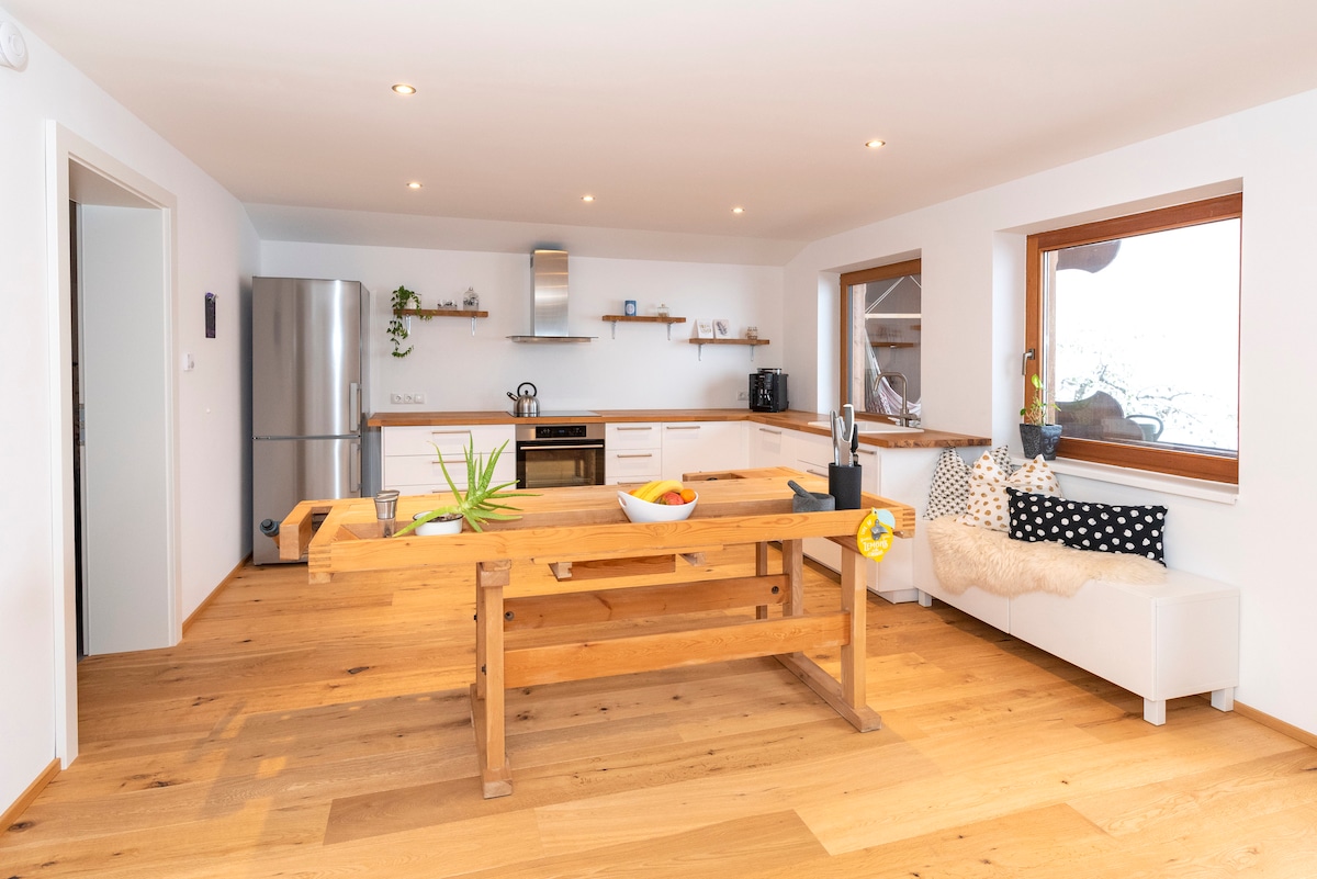Затишна квартира з люблячими альпійськими деталями, може вмістити 6 осіб. Тут є все необхідне, щоб просто відключитися і розслабитися. Незалежно від того, чи відпочиваєте ви вдвох, чи весело проводите час із сім’єю, чи займаєтеся спортом, це місце підходить для всіх. Центральний, але невеликий ПРИТУЛОК у Кітцбюельських Альпах! НОВИНКА: салон краси та масаж у будинку. Ви можете одразу забронювати зустріч.