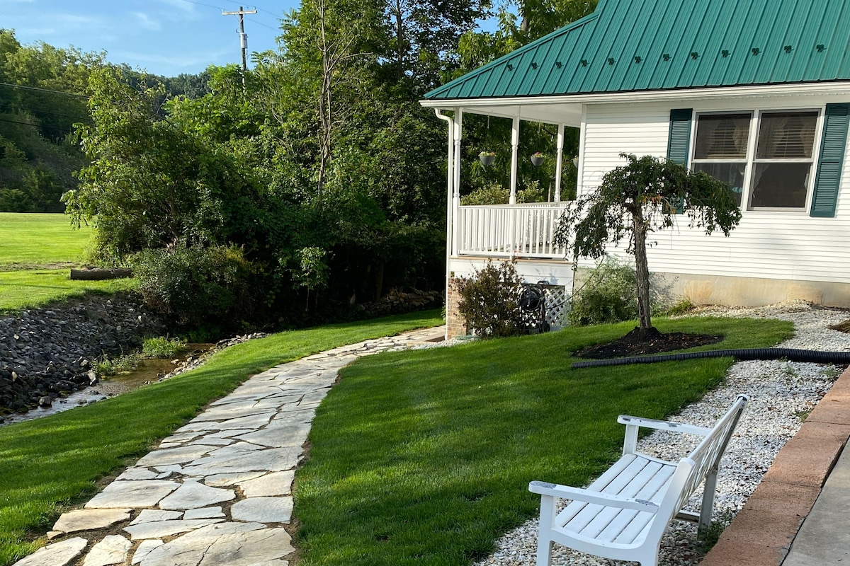 Ця квартира з 2 спальнями побудована в 2017 році знаходиться в 20 хвилинах їзди до Пенн-Стейт, в тихому лісі з чудовим видом. Насолоджуйтеся всіма зручностями дому, включаючи окремий вхід, відкритий план поверхів, повністю обладнану кухню, смарт-телевізор, кондиціонер, пральну/сушильну машину та відкритий внутрішній дворик з місцем для багаття. 2 спальні забезпечують приватність і комфорт ліжок розміру King size, а також диван-ліжко та футон у вітальні для додаткових гостей. Насолоджуйтеся державним коледжем, а потім відпочивайте в цьому сусідньому помешканні на гірському схилі.
