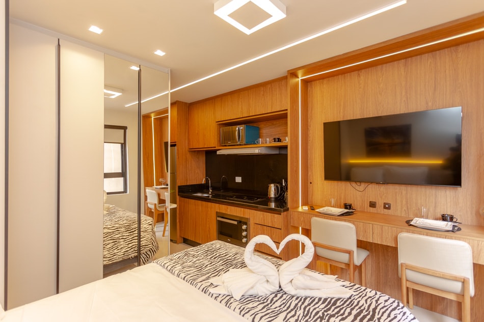 Дизайнерська студія, створена архітекторами в центрі Куритиби. Повністю облаштована квартира з сучасним декором, першокласною технікою та бездоганним оздобленням. Вміщує до 3 осіб, є двоспальне та односпальне ліжка. Повністю обладнана кухня, швидкісний Wi-Fi, Smart TV та кондиціонер. Ідеально підходить для роботи або відпочинку. Привілейоване розташування в центрі, поруч з усім. Насолоджуйтеся чудовим прийомом у унікальному та вишуканому помешканні! Душ ідеальний😍