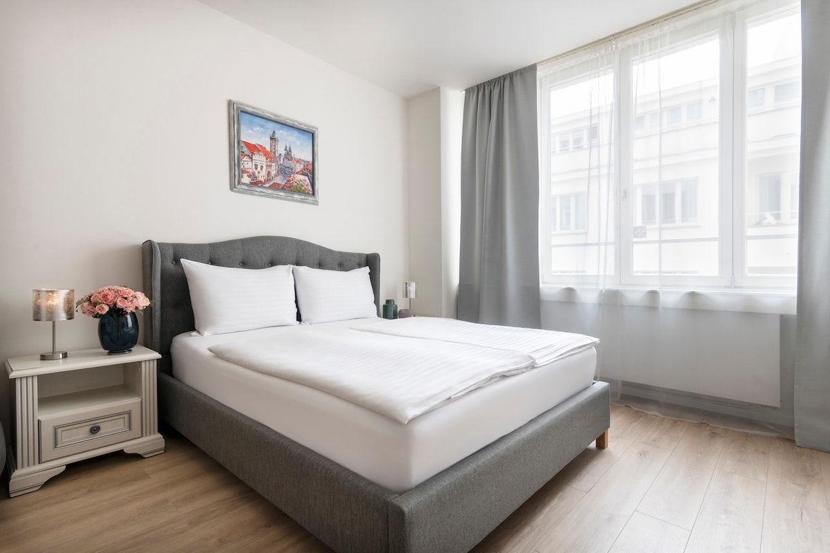 Chic Karlín Escape: Sunny Balcony & Secure Parking