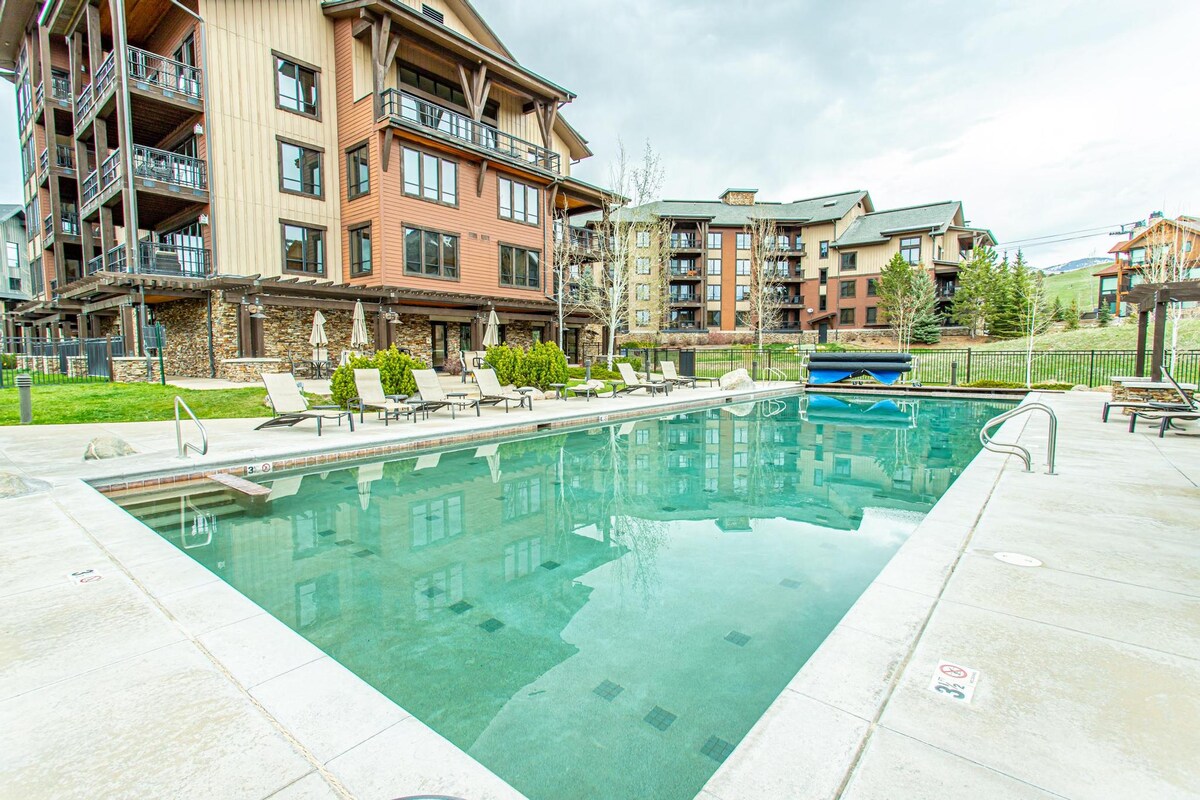 Цей нещодавно відремонтований просторий кондомініум 1/1 у Скелястих горах має домашній комфорт і знаходиться всього в декількох кроках від курорту, що робить його ідеальною домашньою базою для вашого відпочинку в Стимбоут-Спрінгс! Після довгого дня в горах насолоджуйтеся доступом до басейну з підігрівом, двома гідромасажними ваннами та відкритими грилями, перш ніж запалити камін і транслювати улюблені шоу на 65-дюймовому смарт-телевізорі. Ця квартира дуже комфортна, з великим диваном, підлогою з підігрівом та фіолетовим матрацом розміру King size.