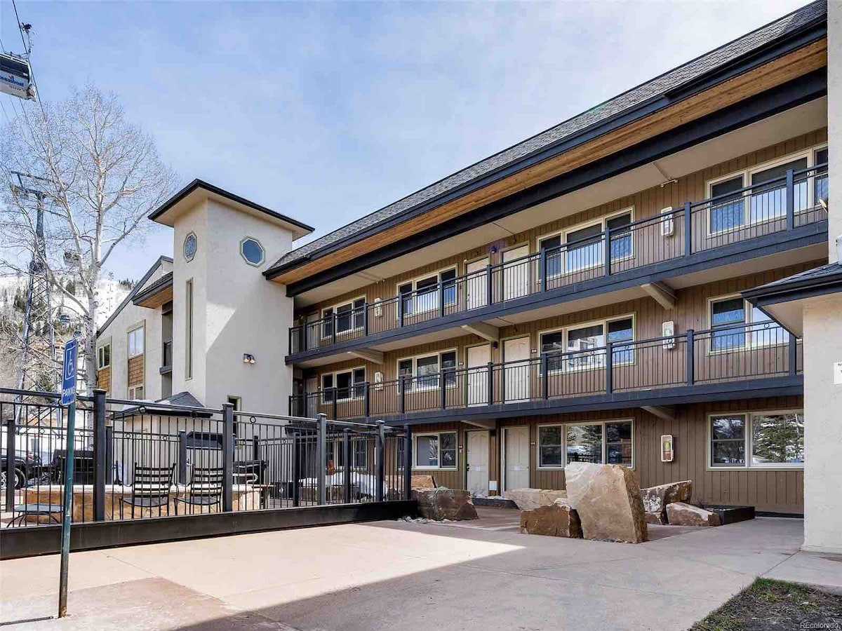 1BR, оновлений кондомініум у Скелястих горах. Нові підлоги, фарба та меблі. Чудове розташування - менше 10 хв. пішки або безкоштовний міський автобус (взимку) до базової зони! Ліжко king-size у спальні, камін, балкон, невеликий обідній стіл, повністю обладнана кухня та шафка для лиж. Комплекс включає басейн з підігрівом (відкритий цілий рік), дві гідромасажні ванни, пральню, грилі, майданчик для волейболу з піском та безкоштовну парковку. Поруч база (можна прогулятися), продуктовими магазинами та ресторанами, а також за 2 милі до центру міста. Приходьте насолоджуватися всім, що може запропонувати Стимбот-Спрінгс!