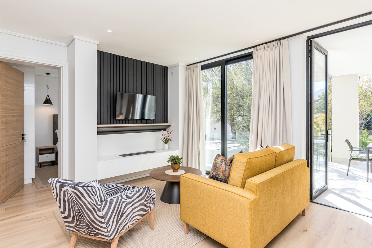Saffron Place - це простора квартира з самообслуговуванням з 2 спальнями та вітальнею відкритого планування, що веде до великого патіо на першому поверсі. Сімейний люкс із головною спальнею має відкриту ванну кімнату з невеликою односпальною спальнею. Третя спальня з двоспальним ліжком і суміжною ванною кімнатою розташована з іншого боку вітальні. Розташування поблизу ортопедичної лікарні, торгового центру та шкіл. У декількох хвилинах ходьби від історичного центру міста Стелленбос. Сучасний. Безпечний. Зручний.