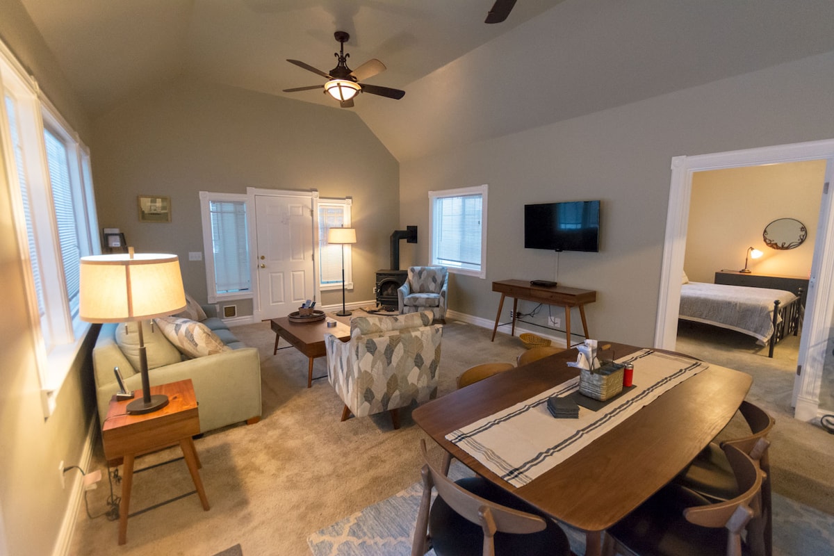 Ця затишна квартира з 1 спальнею в одному кварталі від центру міста Ред-Лодж - ідеальний гірський відпочинок. Усього в 15 хвилинах від гори Ред-Лодж є повністю укомплектована кухня, смарт-телевізор, Wi-Fi та пральна/сушильна машина в помешканні. Відпочиньте біля каміна або зібрайтеся біля чаші для багаття. У добре обладнаній ванній кімнаті є рушники та туалетне приладдя, а в квартирі є опалення та кондиціонер для цілорічного комфорту. Завдяки чудовим зручностям і чудовому розташуванню це ідеальна база для вашої пригоди в Red Lodge.