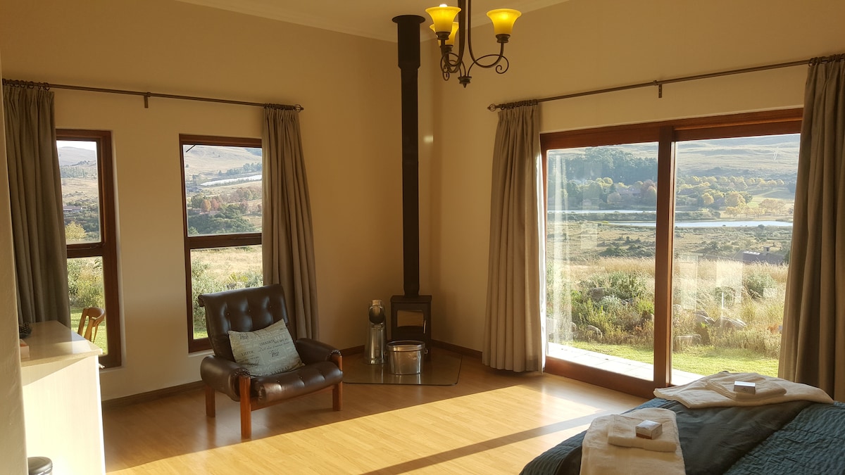 Розкішний дерев 'яний будиночок, розташований у лісі в Даллстумі, Мпумаланга. Будинок має великих вдів, з яких відкривається вид на навколишні ліси, що надає гостям спокійну та спокійну атмосферу. До ресторанів, магазинів, пішохідних прогулянок, риболовлі та гірських велосипедних маршрутів можна дійти пішки. 1 спальня з двоспальним ліжком з футоновим ліжком у кабінеті, де можуть розміститися додаткові 2 гостя. Безпечна та надійна парковка.