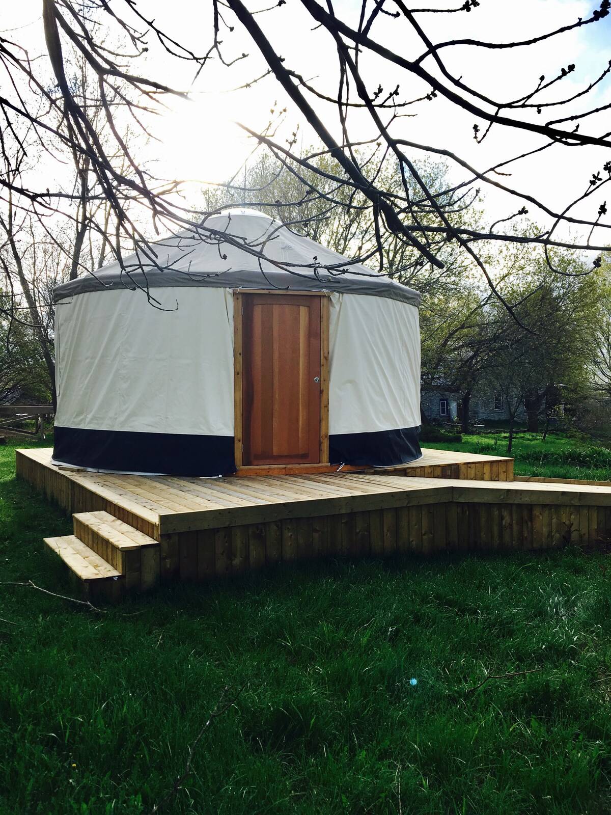 Фінбарр і Елеонора володіють Спрінгфілд-Фарм з січня 2014 року, заснував 121 акр як робочу сімейну ферму. Спрінгфілд-Фарм пропонує унікальні юртові враження. Це красивий «намет», «глемпінговий» бутик, ЯКИЙ ТАКОЖ включає безкоштовний континентальний сніданок із домашнього йогурту, граноли та сезонних фруктів, а також кави/чаю, а також булочки або двох! У вартість перебування входить 2 БЕЗКОШТОВНІ абонементи на диск-гольф на 18 лунок.