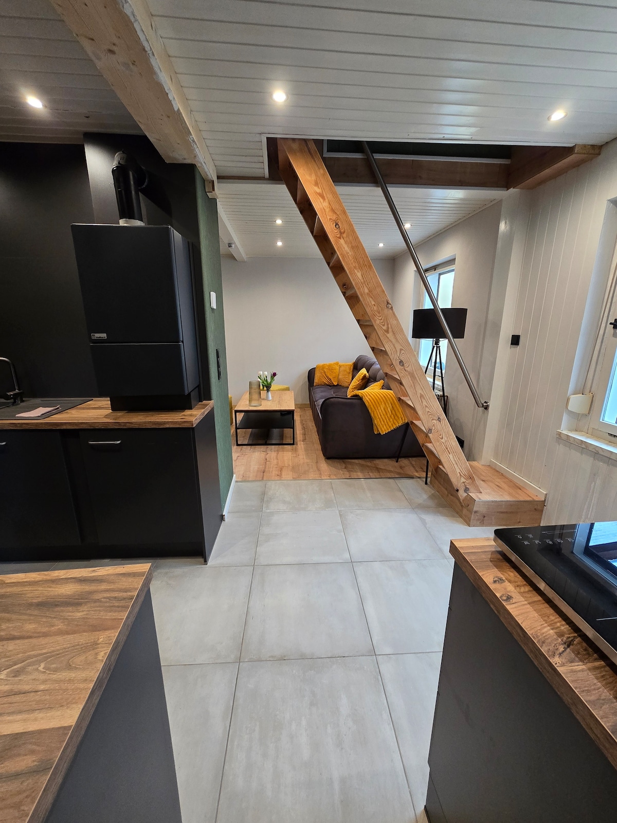 Квартира знаходиться на першому поверсі і вміщує 2 особи. Ванна кімната обладнана великим низьким душем, інфрачервоною кабіною та підігрівом підлоги. Кухня повністю обладнана кавоваркою, тостером, чайником. Пральна машина-сушарка також інтегрована в це. Високі стелі та великі вікна дарують чудове відчуття простору, що підкреслюється сучасними світлодіодними лампами. Зменшення яскравості освітлення в кімнатах або регулювання температури світла за бажанням.