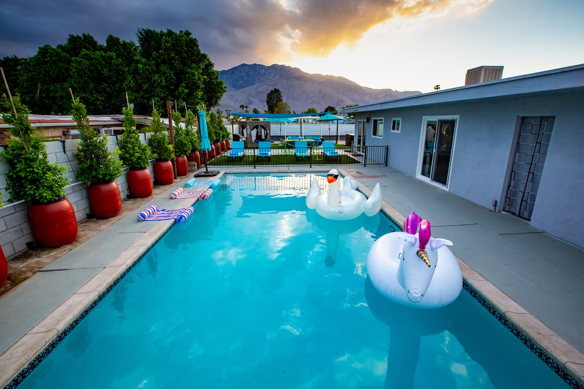 Live the Palm Springs dream at The Landing, our beautifully remodeled Island Architects midcentury home. Enjoy stunning views of the San Jacinto mountains and spacious desert skies aglow with colorful sunrises and sunsets. Nestled between the mountains and the Palm Springs International Airport, and just 7 minutes from downtown Palm Springs, guests will be treated to planes landing from distant destinations as friends and family come to soak in the sun. Palm Springs License 4545 ToT #7709