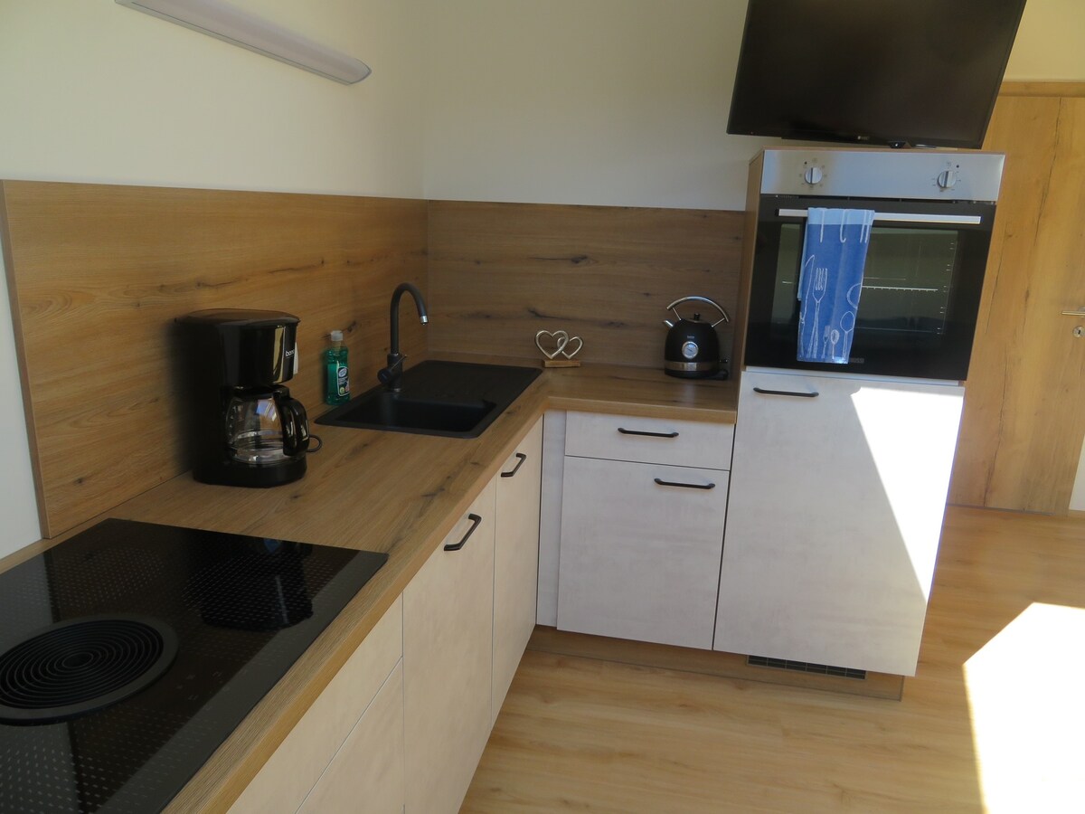 Ласкаво просимо до нашої нової квартири для відпочинку в центрі Таупліца в абсолютно тихому місці! Наше просторе помешкання може вмістити до 6 осіб із двома спальнями, комфортабельним диваном-ліжком у вітальні, ванною кімнатою та окремим туалетом. Кухня обладнана високоякісною побутовою технікою, посудом та склянками. Насолоджуйтеся просторою терасою, що виходить на південь, з видом на барбекю, і будьте зачаровані затишною атмосферою нашої ексклюзивної квартири.