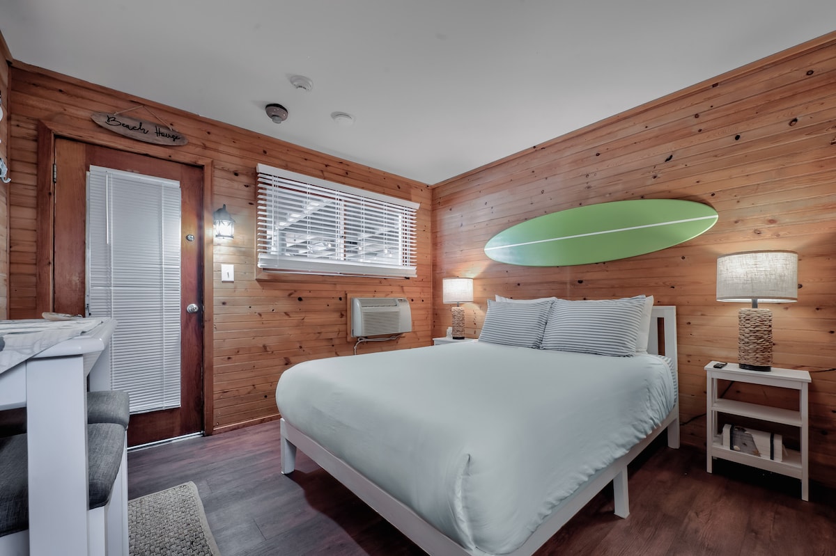 Менша кімната з двоспальним ліжком. Окрема ванна кімната, безкоштовний кабельне телебачення/Roku, Wi-Fi та доступ до пляжу. Ми знаходимося в одній хвилині ходьби від 2 пляжів і в декількох хвилинах ходьби від центру міста, магазинів і різних щотижневих міських заходів. Спільна зона з кавою та водою, внизу є повноцінний ресторан зі сніданком, обідом та вечерею. Послуги покоївки не надаються. ЦЯ КІМНАТА РОЗТАШОВАНА НАД РЕСТОРАНОМ І БАРОМ НА 2-МУ ПОВЕРСІ, ДО НЕЇ МОЖНА ДІСТАТИСЯ СХОДАМИ. ІСНУЄ ЙМОВІРНІСТЬ ШУМУ, ОСОБЛИВО У ВИХІДНІ ДНІ.