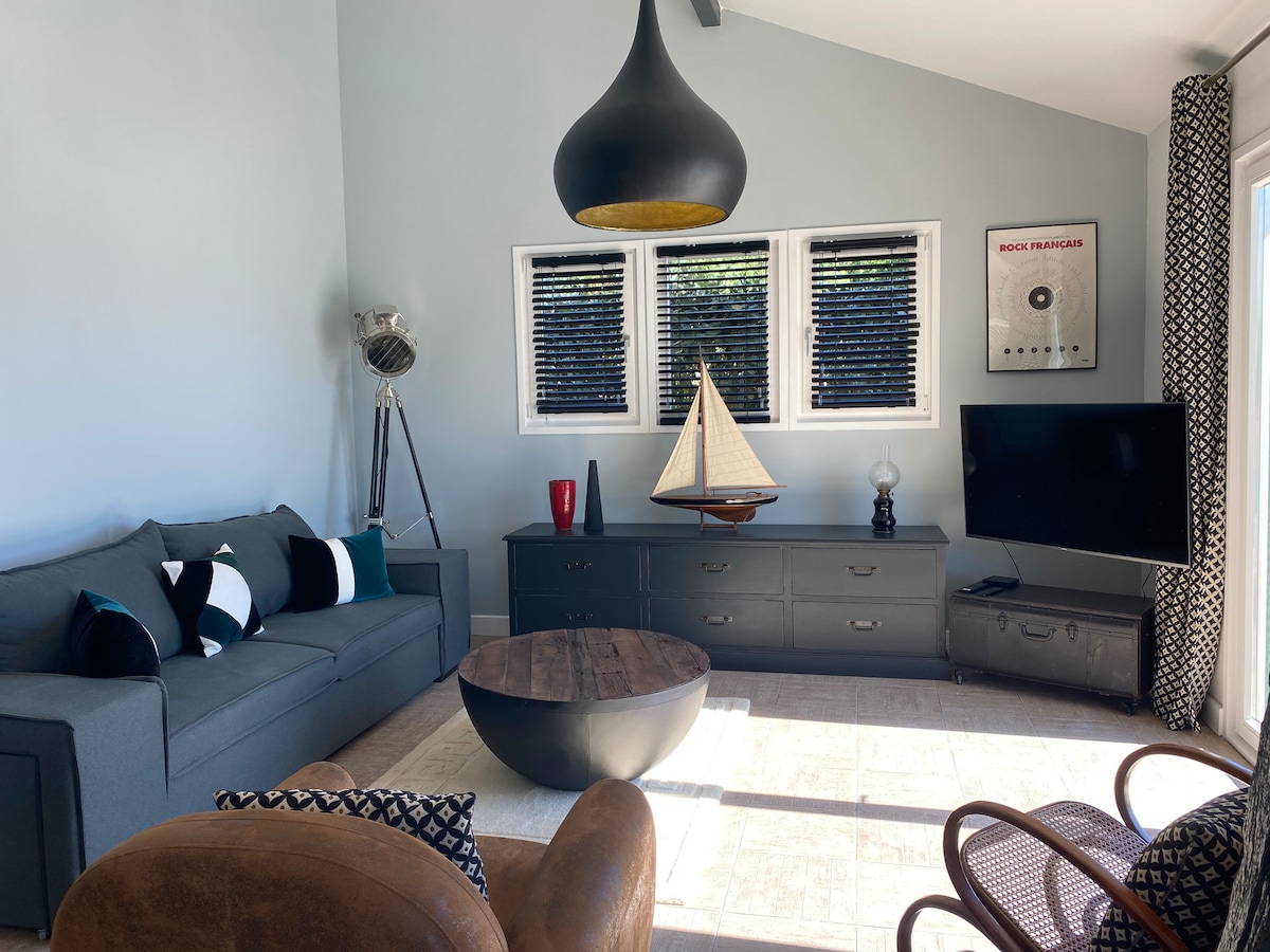 Ця студія на першому поверсі площею 26 м2 має всі комфортні умови зі своєю терасою та садом , незалежно від окремого будинку та розташована в нещодавньому тихому підрозділі. Чудовий вид на виноградники та в оточенні багатьох туристичних маршрутів,ваше перебування буде сприяти спорту, культурним заходам, телероботі. Магазини , басейн і залізнична станція знаходяться на відстані 1,5 км, 15 хвилин ходьби. Доступність для людей з обмеженими можливостями, безкоштовна парковка, Wi-Fi . Ласкаво просимо до всіх:)