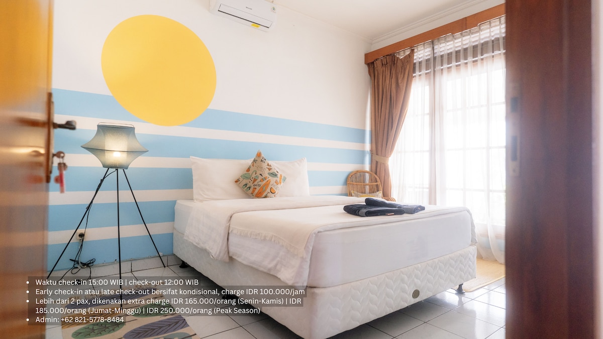 Rumah Kuki розташований у високогір 'ї Лембанг, всього за півгодини їзди від Бандунга. Можна забронювати для фотозйомки або відпочинку у вільний час. У нас є мезонін, 1 спальня з концепцією відкритої плани, 1 ванна кімната та спільний сад. Зроблено на 2 людини, може розміститися 3 людини. Небезпечно для дітей віком до 12 років. Розташоване в спільній садовій зоні, і В ПРИМІЩЕННІ Є ДОМАШНІ ТВАРИНИ, ЯКІ МОЖУТЬ СТВОРЮВАТИ ШУМ.