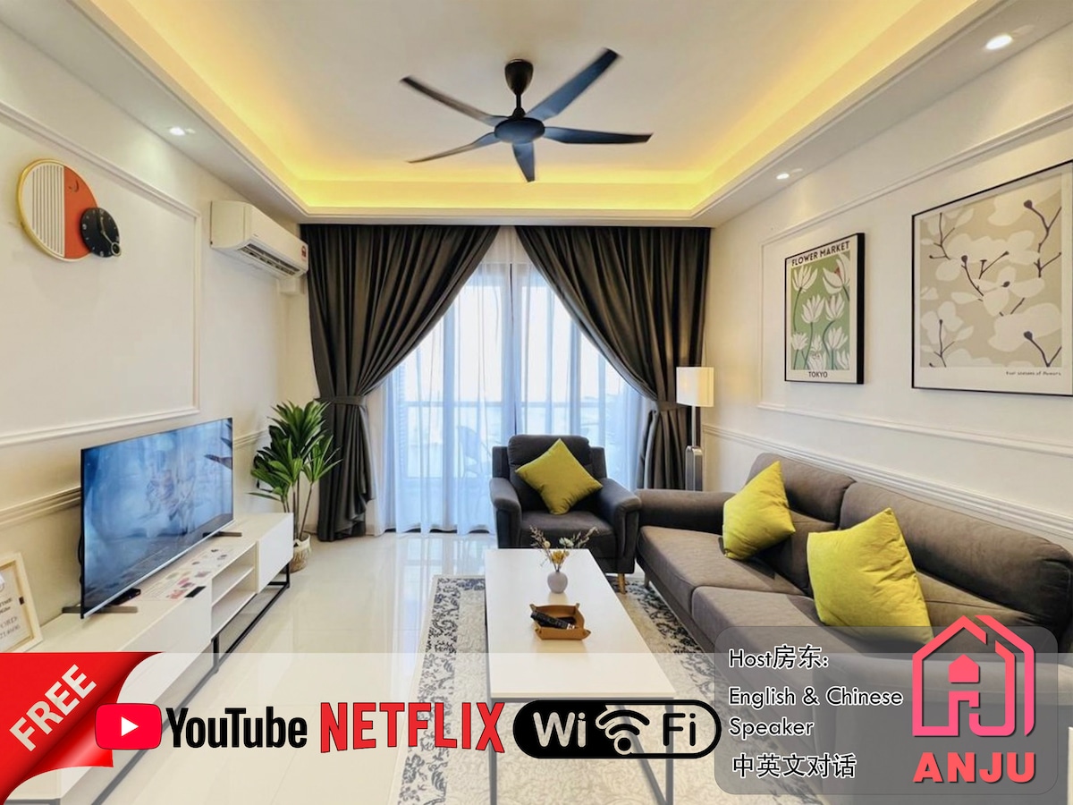 Розкішний просторий номер із 3 спальнями та ванною! Ліжка преміум-класу розміру King size і Queen size, які гарантують гарний сон тут із дивовижним видом на торговий центр Midvalley Southkey! Головне підсвічування! - Приватна ванна. -65-дюймовий смарт-телевізор із застосунками YouTube і Netflix; - Стіл для басейну. - Ігрова приставкаRetro - Диспенсер для питної води Навколо торговий центр і широкий асортимент місцевої смачної їжі - 2 хвилини їзди до Midvalley Southkey JB. - 5 хвилин до торгового центру KSL City Mall. - 8 хвилин до торгового центру City Square Mall & Custom JB.