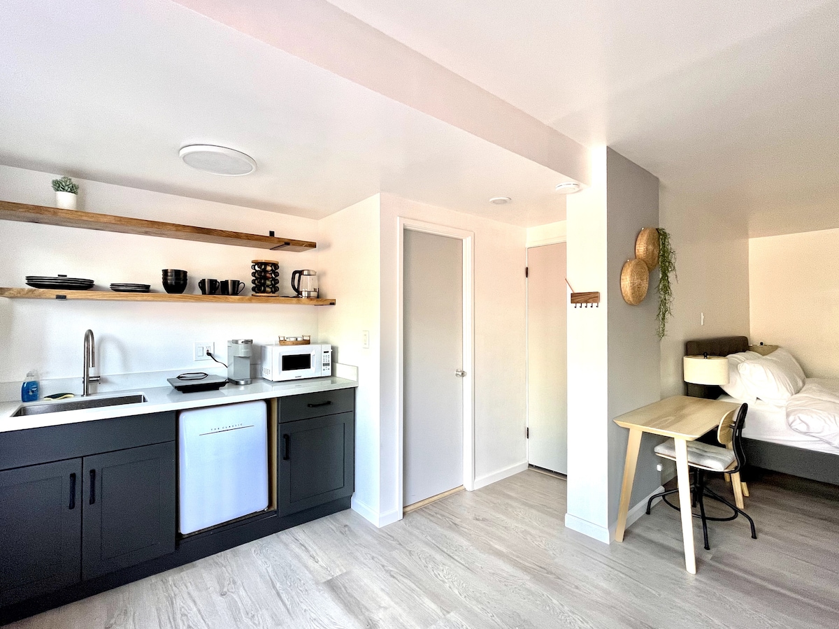 Unwind in our newly renovated, stylish studio - your own private retreat with no shared spaces. Enjoy a plush king bed, a fully equipped kitchen, and easy free street parking. Located in the friendly Sunset District, just a mile from Ocean Beach and Golden Gate Park, it’s ideal for couples, small families, festival-goers, and anyone visiting friends or family in SF or the Valley.