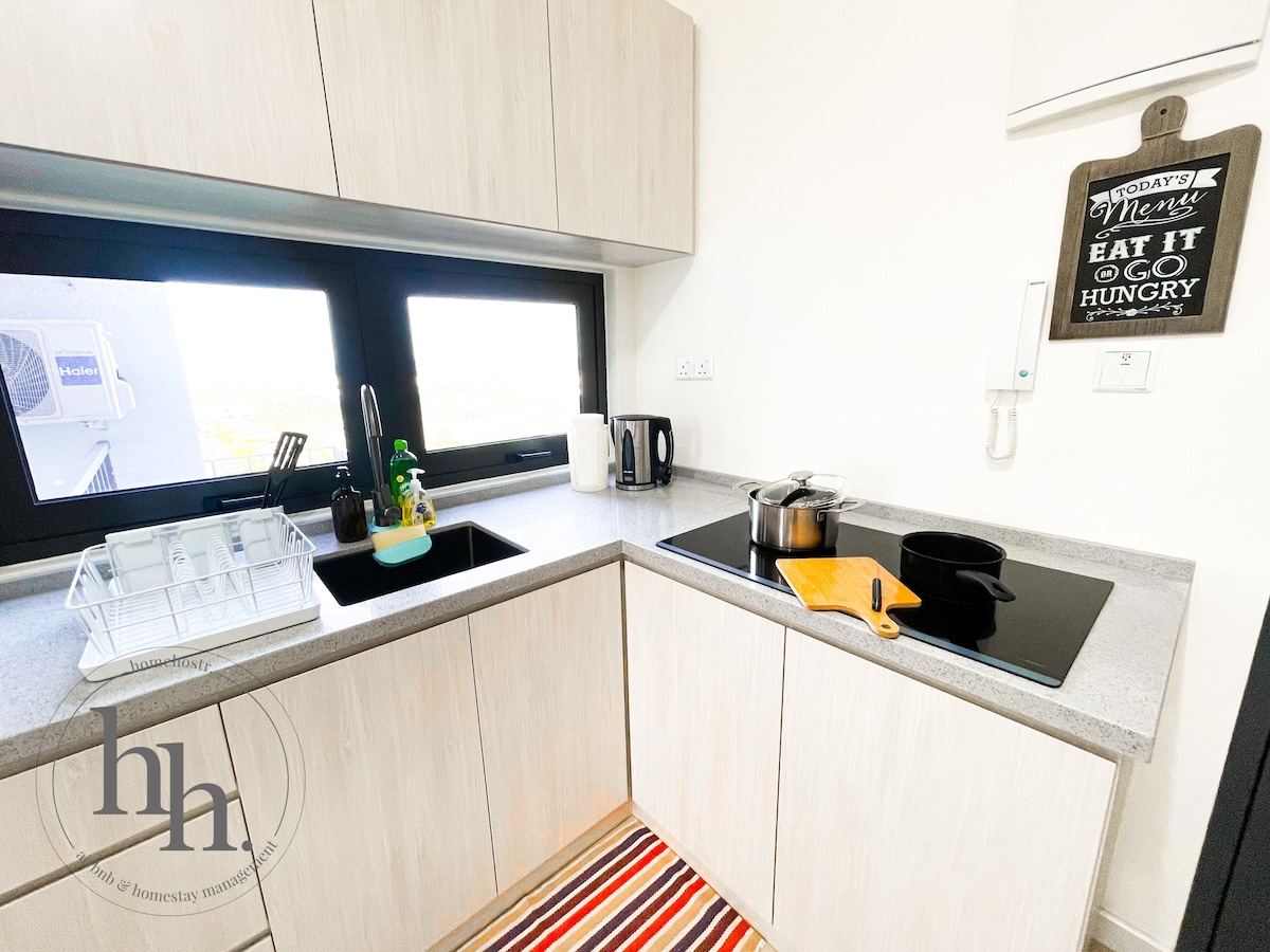 Ласкаво просимо до Sunway GRID Residence - стильного міського відпочинку поруч із роздрібним парком Sunway Big Box! Наша студія вміщує 4-8 гостей з 2 ліжками queen-size та 4 матрацами на підлозі. Відкрийте для себе визначні пам 'ятки, магазини та ресторани поблизу. Незалежно від того, чи для бізнесу, чи для відпочинку, SunwayGRID забезпечує комфорт і зручність. Ідеально підходить для бізнесу або відпочинку, досліджуйте найближчі пам 'ятки. Зверніть увагу: хоча помешкання вміщує 8 осіб, ми рекомендуємо 4-6 гостей для комфорту через одну ванну кімнату. Забронюйте помешкання для чудового відпочинку!
