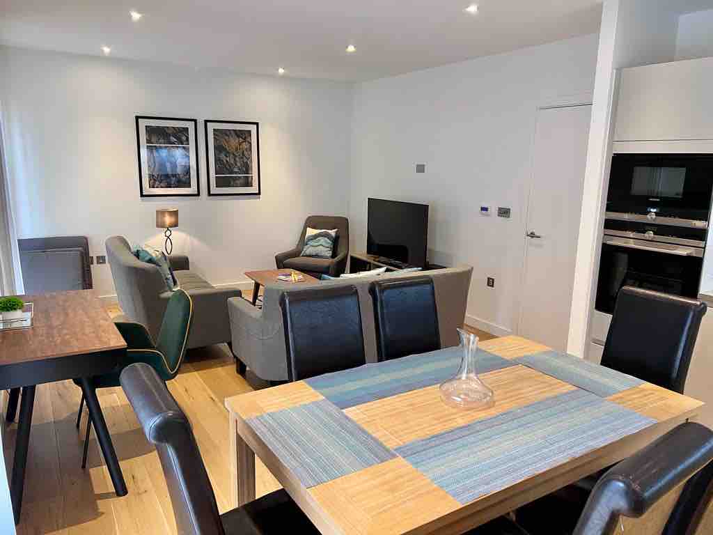 Квартира розташована на відстані прогулянки від вулиці Ешер Хай Стріт, через подвір 'я Клайв-хаусу, грузинського житла, побудованого в середині вісімнадцятого століття Клайвом Індії. Нещодавно відремонтоване помешкання включає : вітальню, кухню/їдальню та спальню з двоспальною кімнатою та власною ванною кімнатою з двоспальним ліжком розміру «king-size» Житло включає нову компактну та повністю обладнану кухню, обідню зону з дров 'яною піччю, розкішний диван та звукову панель Smart HD TV/ Sonos, а також безкоштовний Wi-Fi.