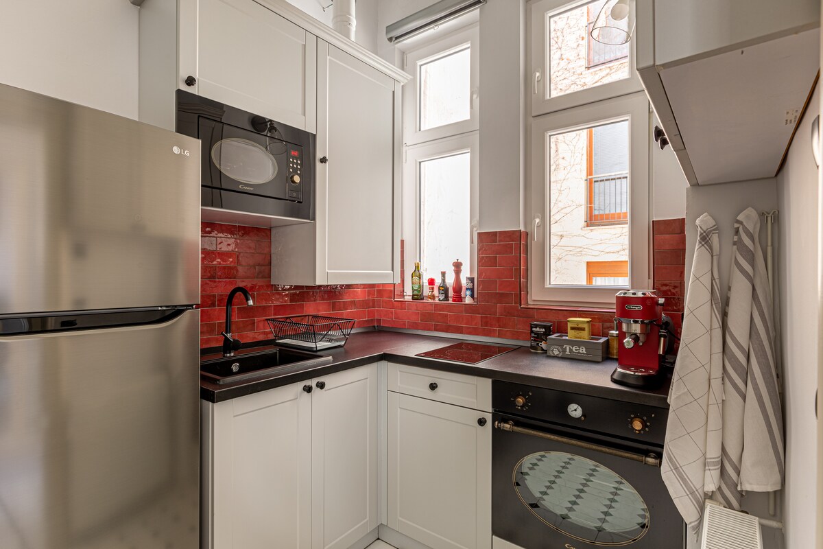 Ласкаво просимо до нашої нової, розташованої в центрі, комфортабельної квартири-студії. Завдяки самому центральному розташуванню це ідеальна відправна точка для денних і нічних досліджень пам 'яток та розваг. У той же час тут дуже тихо, оскільки квартира виходить на тихий внутрішній двір. Квартира знаходиться на антресольному поверсі, до неї ведуть лише 20 сходів, вікна виходять на тихий сад, заблокований від будь-якого вуличного шуму. У нас є цифровий дверний замок, тому ви можете прибути в будь-який час.