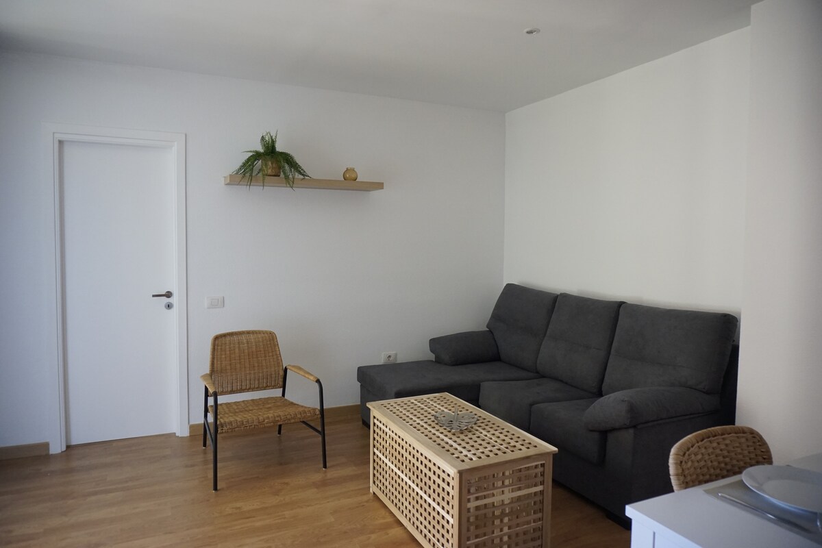 Precioso apartamento de una habitación totalmente equipado y recién reformado a 10 minutos de la capital y a 35 minutos del sur de la isla. En primera línea de playa con unas vistas inigualables, con acceso a piscina natural ubicada a escasos metros y al muelle, donde podrás bañarte en el mar. Si lo prefieres, puedes acceder al club deportivo con canchas para varios deportes, gim y piscina (acceso privado). Complejo tranquilo, con buena conexión al bus público y varios supermercados.