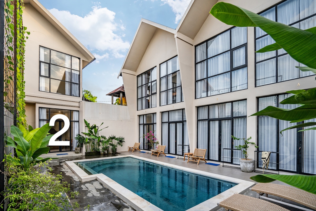 Відпочиньте в стильному лофті в Табанані з гідромасажною ванною з видом на ліс – ідеально підходить для відпочинку або віддаленої роботи. Цей мінімалістичний простір має повністю обладнану кухню, швидкий Wi-Fi та сучасні дизайнерські штрихи. Розташоване всього за кілька хвилин від пляжу з чорним піском, яскравого місцевого ринку та приголомшливих заходів сонця, це ідеальне місце для цифрових кочівників або пар, які хочуть відкрити для себе справжній, незайманий Балі – далеко від туристичних натовпів.