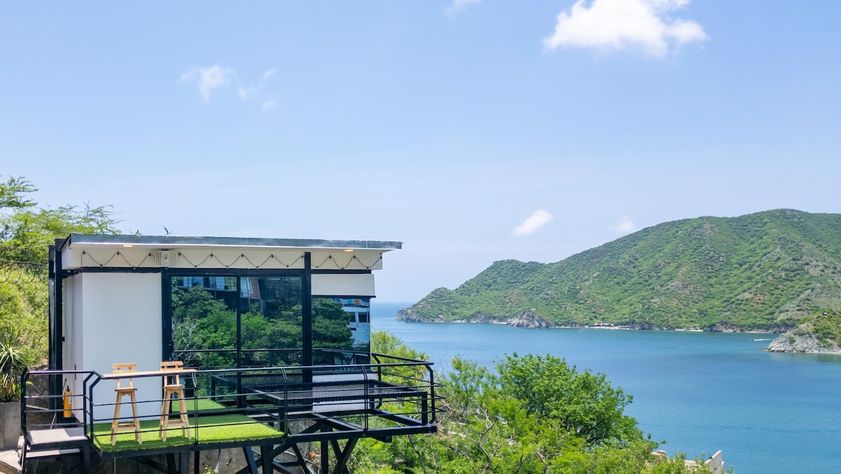 Наш зруб розташований у мальовничому рибальському селищі Таганга і пропонує ідеальний відпочинок для тих, хто хоче відпочити та насолодитися природною красою колумбійського карибського узбережжя. • Приватний басейн: насолоджуйтеся власним оазисом. Відпочиньте в басейні, милуючись вражаючим видом на гори та море. • Наш зруб, оточений пишною тропічною зеленню, пропонує тиху та розслаблюючу атмосферу, яка ідеально підходить для відпочинку від щоденного стресу.